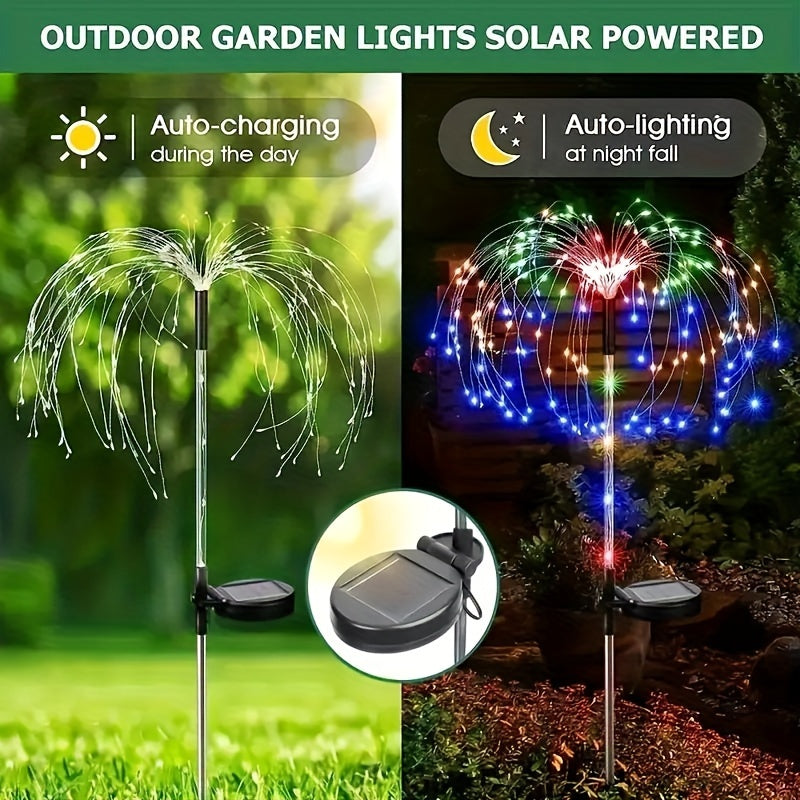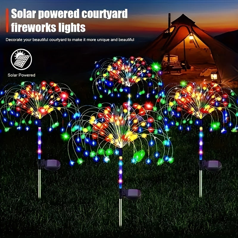 1pc Solar-Powered Dandelion Firework Lights - Brass Copper Wire String for Outdoor Garden & Yard Decor, Easy Install Dandelions Solar Lights Patio Solar String Lights