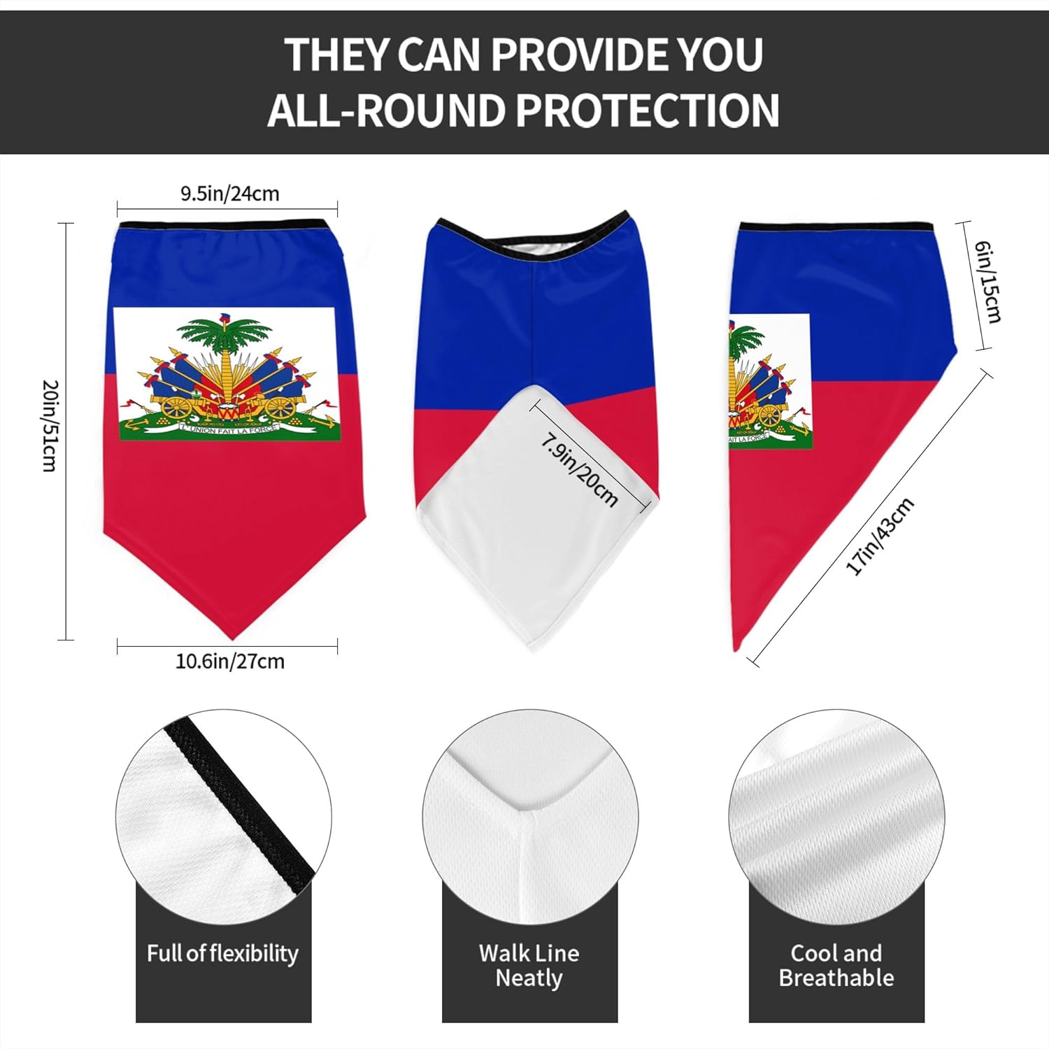 3Pcs Flag Face Mask/Cover Summer Neck Gaiter Breathable Bandana Scarf Balaclava Headwear for Dust