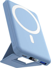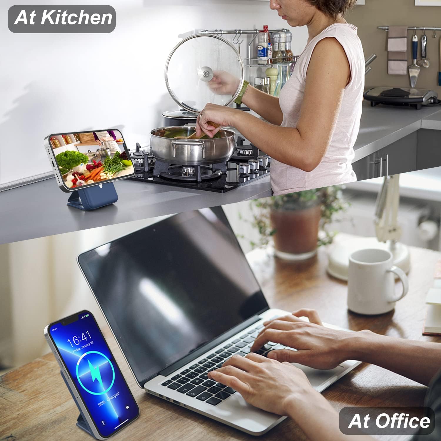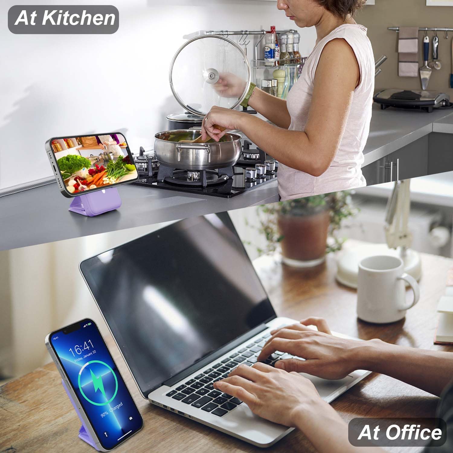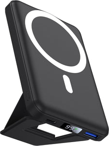 Foldable Stand & Compact Design: The portable charger for iphone with foldable kickstand, keeps your Phone on it vertical or horizontal for a comfortable viewing angle. The built-in baby-like silicone material is to better protect your phone from scratches during wireless charging. Portable phone charger is lightweight and slim, only 0.41lbs, 4.09*2.68*0.86 inches does not block the camera lens and allows you to take it with you anywhere.