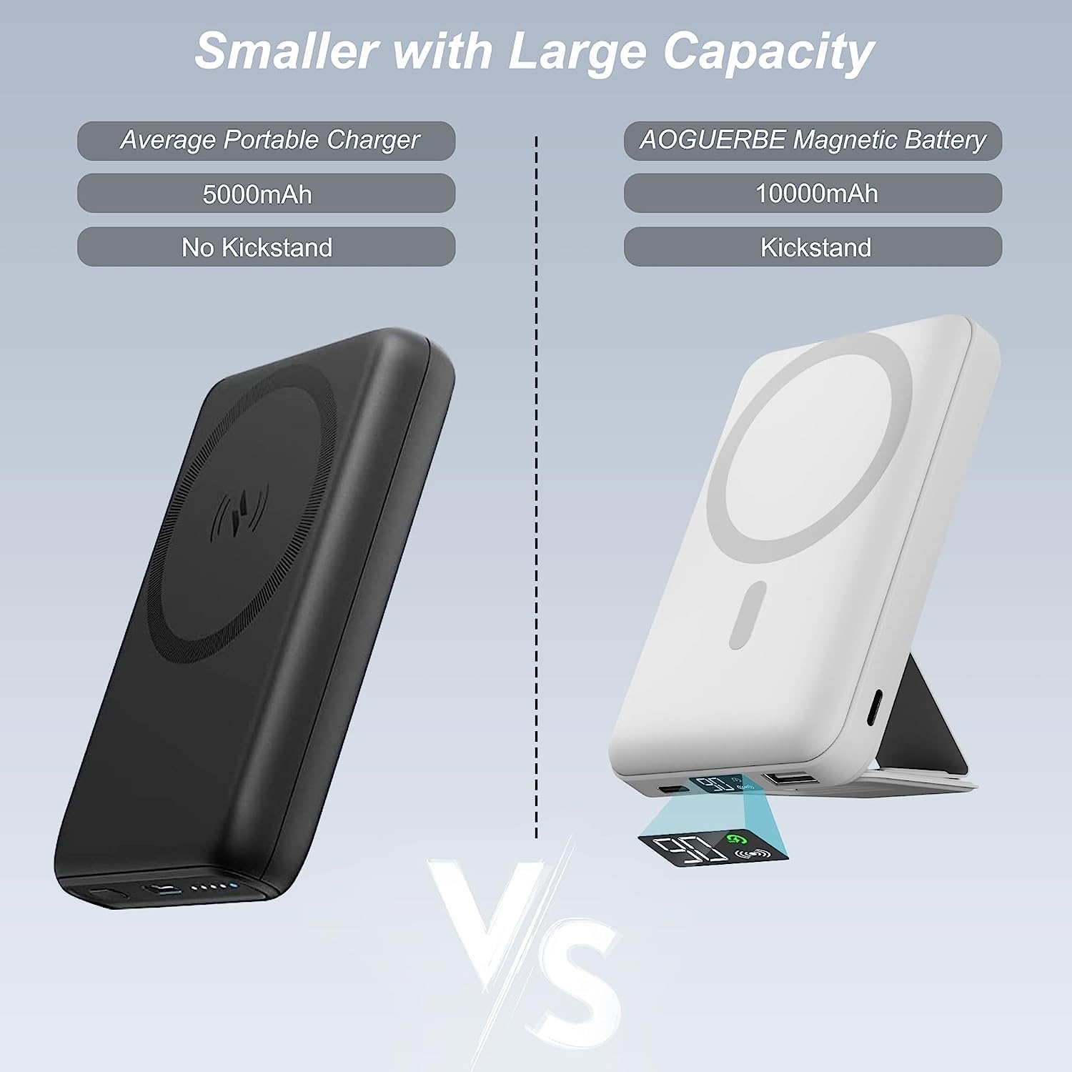 Superior Safety: This Portable power bank built-in smart chip and low-temperature ice cores. keep your devices from overcharging, over-current, short circuits and high-temperature protection to protect the safety of your mag-safe portable charger. What You Get: 10000mAh Magnetic Power bank x 1, USB-C Charging Cable x 1, User Manual x 1. AOGUERBE professional technical support and always friendly customer service.