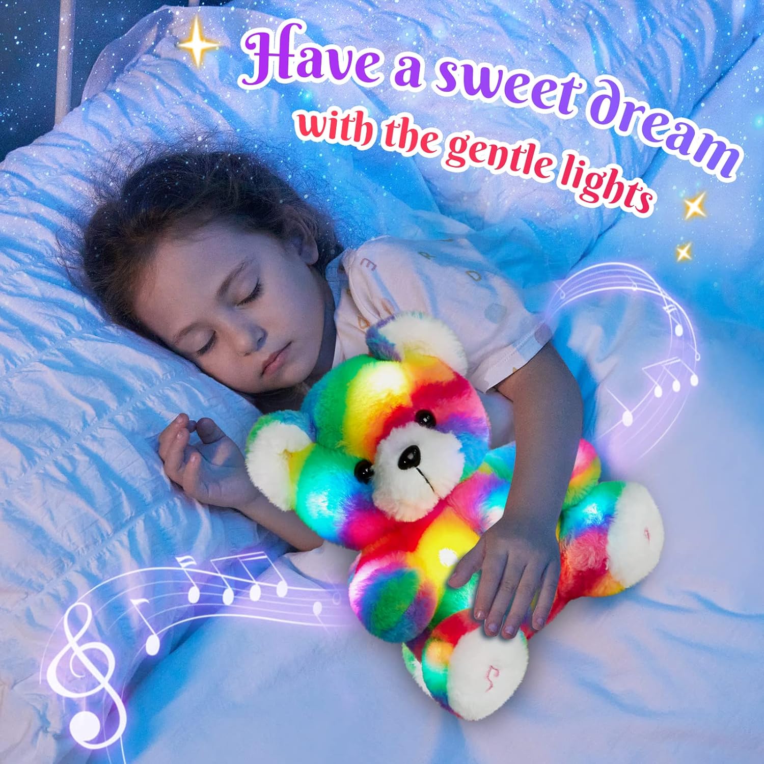 Cadeau idéal : si vous êtes à la recherche d'un cadeau parfait, nous pensons que cet ours en peluche arc-en-ciel lumineux à LED sera idéal. Ce n'est pas seulement un excellent partenaire à saisir tout en regardant un film ou en lisant un livre, mais il est également parfait pour câliner même pendant le sommeil. Offrez une vie de câlins avec un.