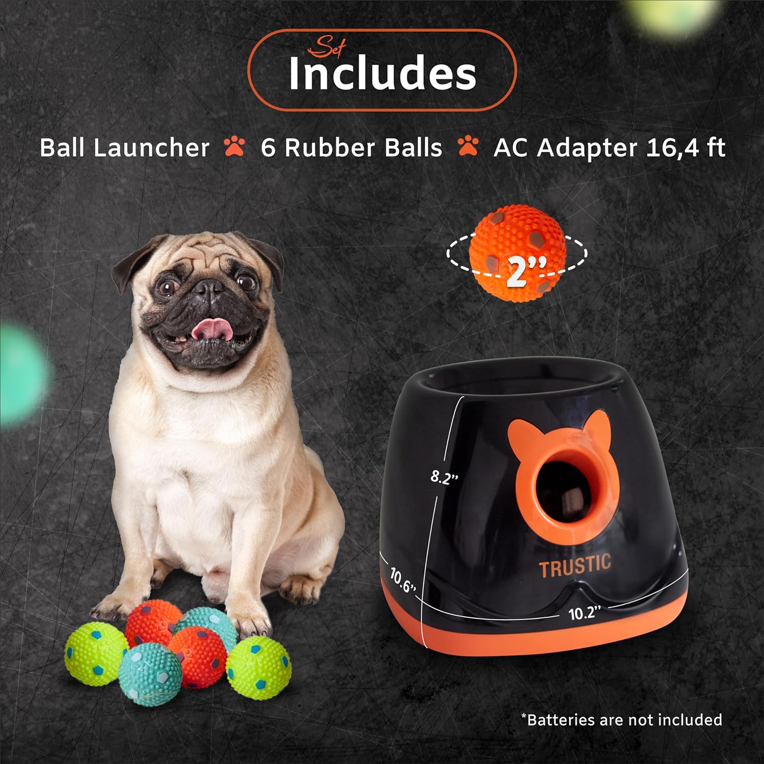 Automatic Ball Launcher for Small to Medium Dogs, Indoor or Outdoor Thrower Fetch Toy, Adjustable Range, Ball Size 2 inch (Black)