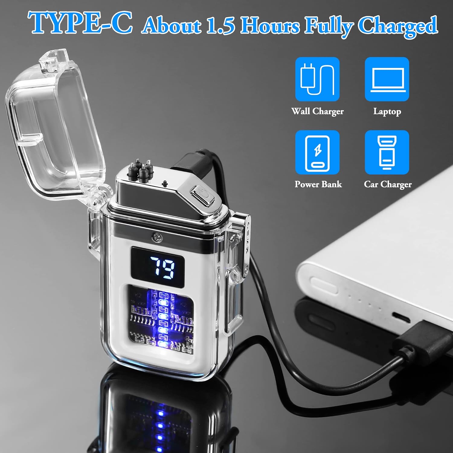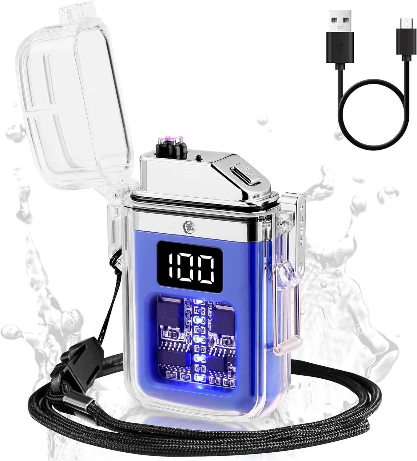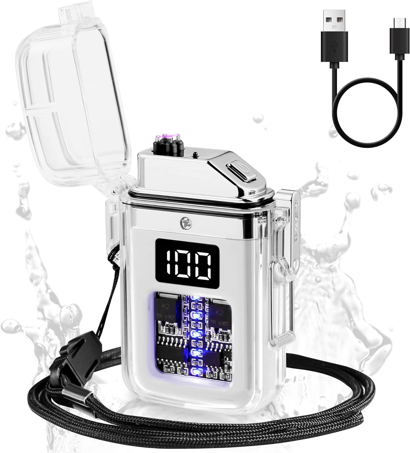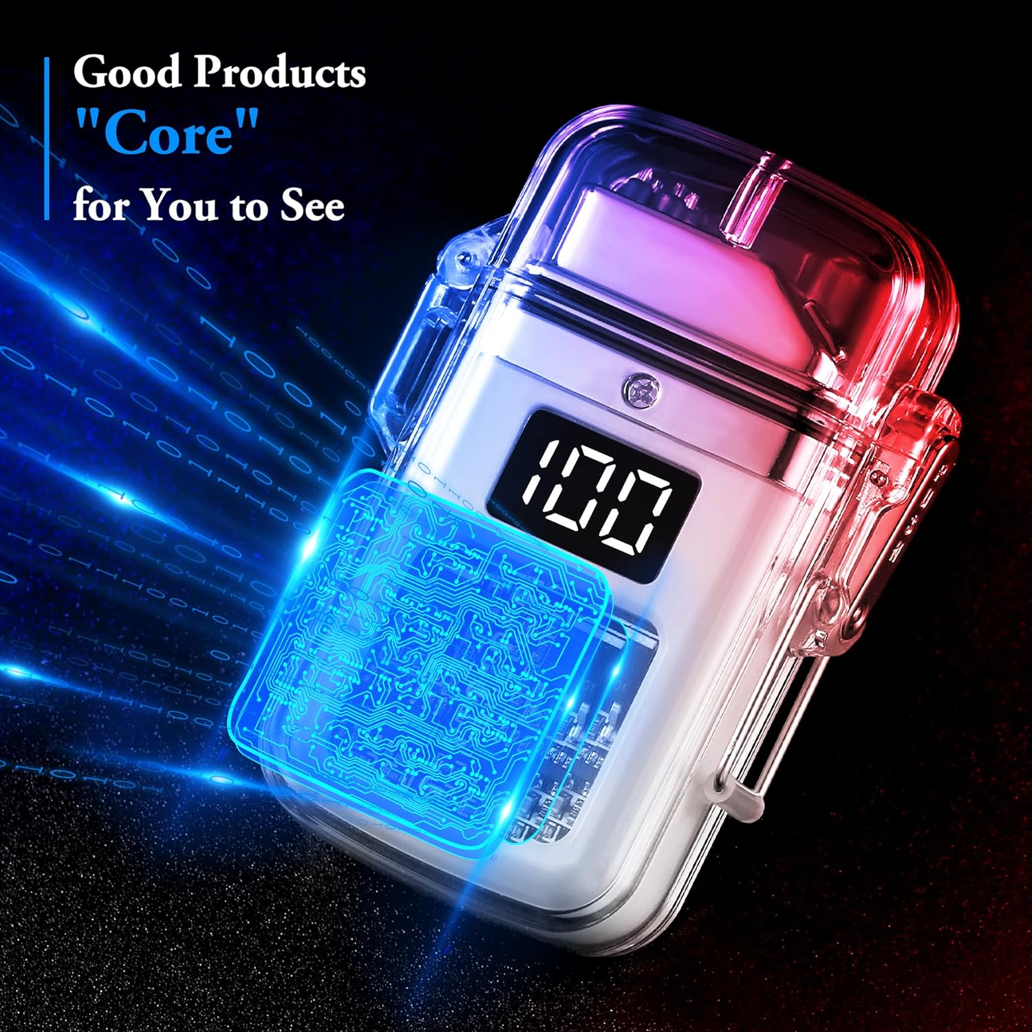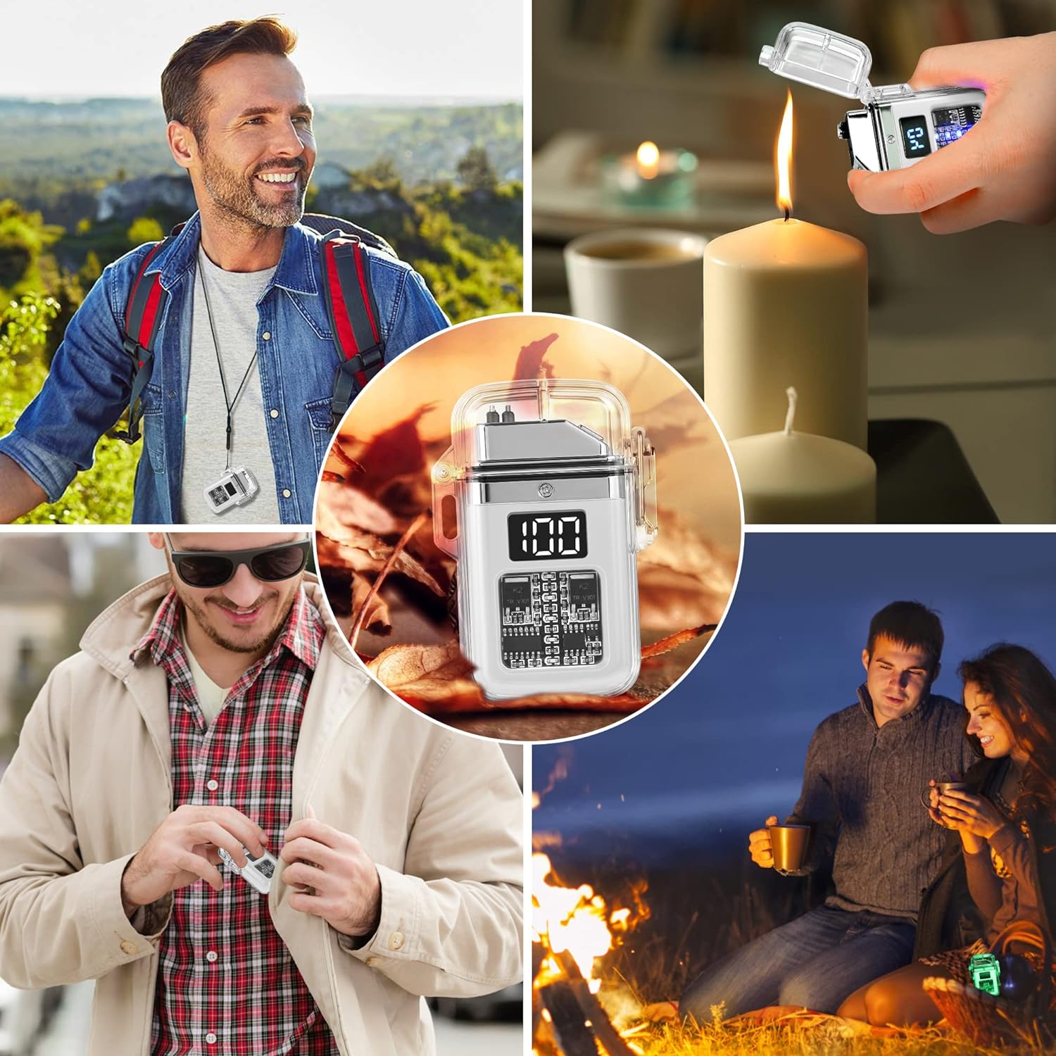 【Briquet IP56 étanche et coupe-vent】 Le briquet de camping a plusieurs protections d'étanchéité, même si tout le briquet coule dans l'eau, il ne s'infiltrera pas. Et le Dual Arc est coupe-vent. Ce briquet de survie en plein air est un bon partenaire de voyage.