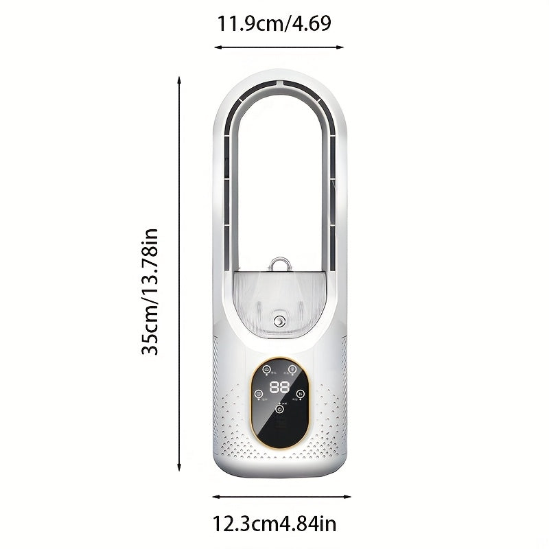Bladeless Fan and Personal Air Conditioner with Ice Mist Cooling, USB-Powered Portable Desk Fan, Quiet Operation, Auto Timer, Wide-Angle Airflow, Fast Cooling, Compact for Home, Office, Travel - White/Blue Modern Design, Portable Fan