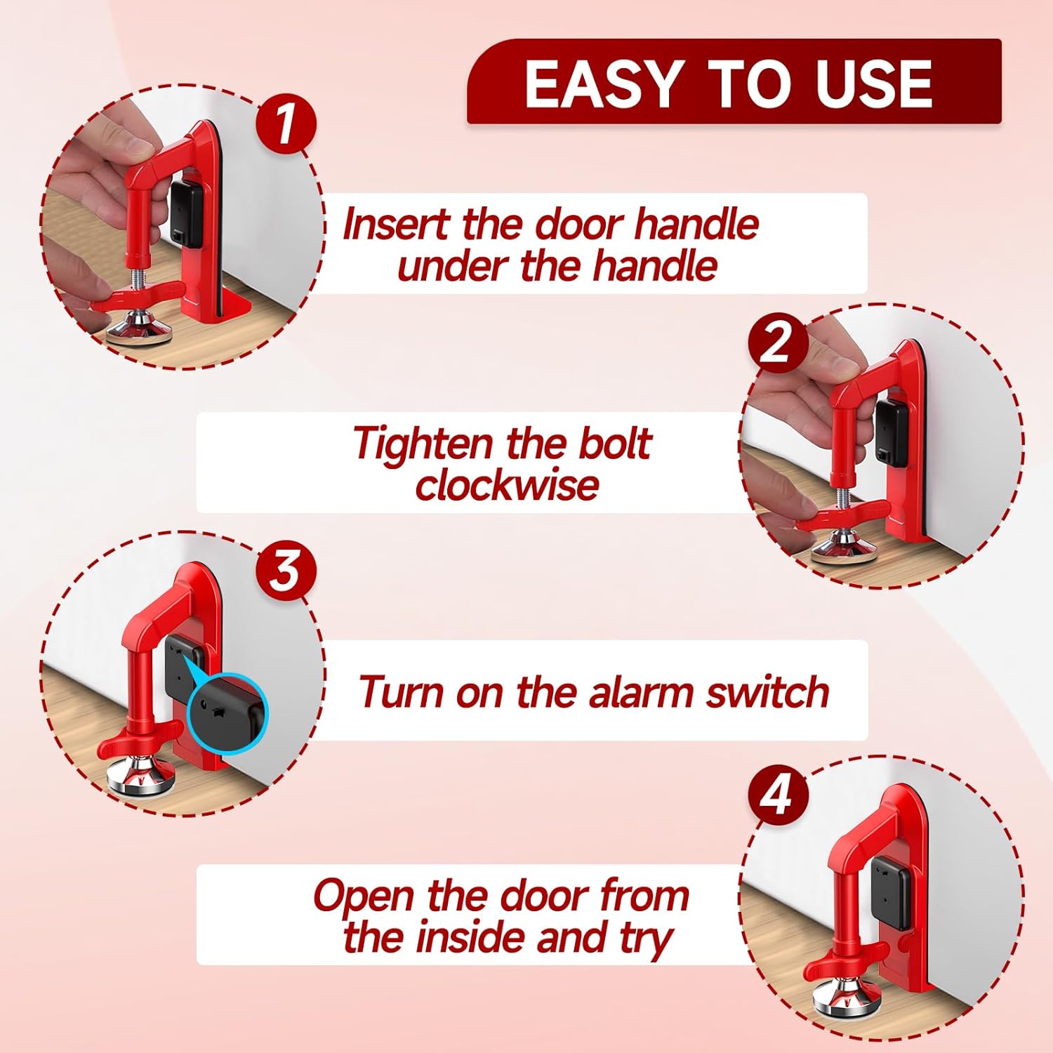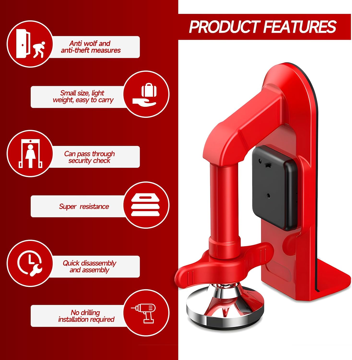Butée de porte d'hôtel portable pour sécurité de voyage 80 dB alarme et alliage robuste, butée de porte sans perçage, verrouillage de sécurité d'hôtel/dortoir, installation instantanée pour femmes et