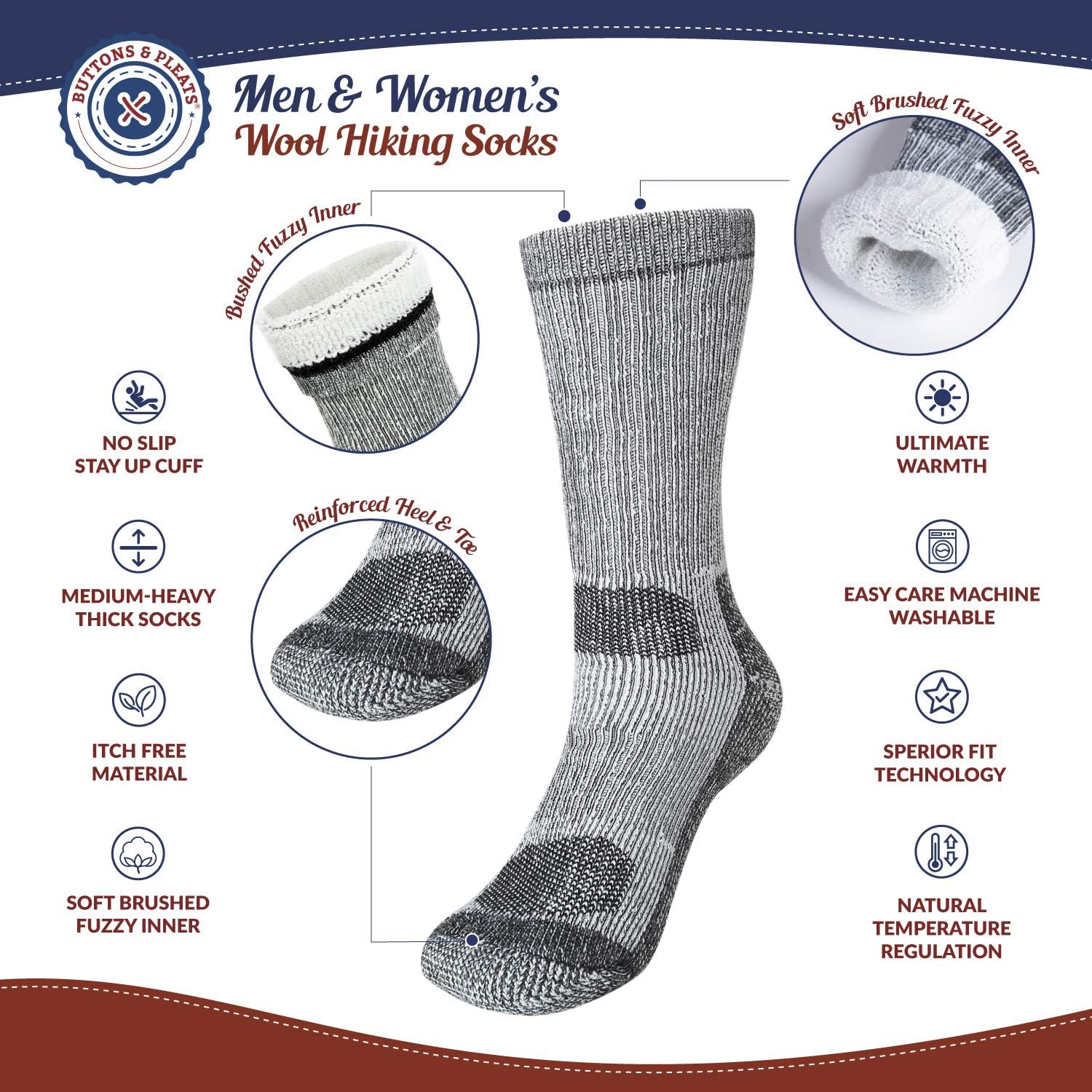 - SUPER SOFT AND WARM The perfect wool socks for men and women who want total warmth above all else, these thick socks trap in heat to keep your feet warm in even the chilliest winter air. The natural temperature regulation of the wool makes these excellent merino wool socks for men and women who don't want their feet to feel overheated.