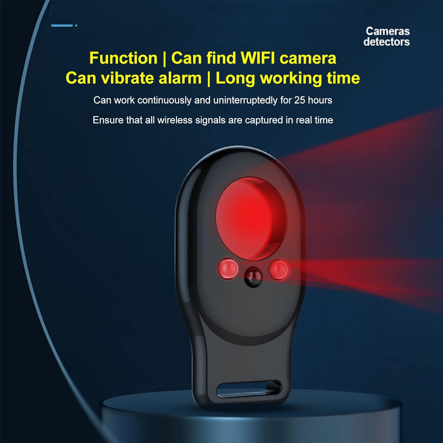【Professional Design】: This cordless detector is expertly designed to locate cameras with precision. Equipped with a vibration alert feature, it ensures immediate notification of any suspicious surveillance devices within a range of 0-5m/0-16.4ft.