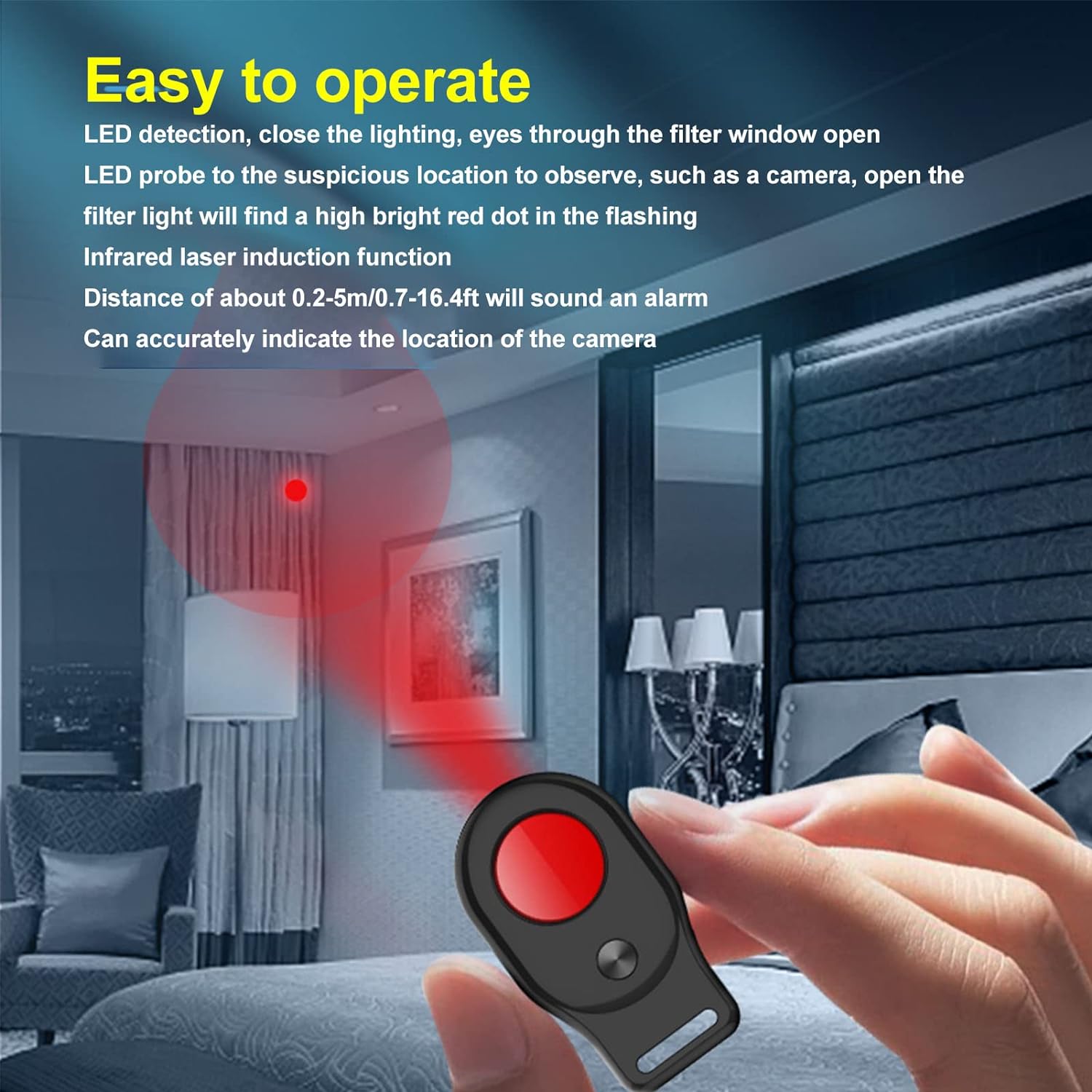 【Easy Operation】: LED detection allows for discreet surveillance. By closing the light source and enabling the LED probe through the filter window, users can easily observe and identify any suspicious locations, such as hidden cameras, by noticing the flashing bright red dot.