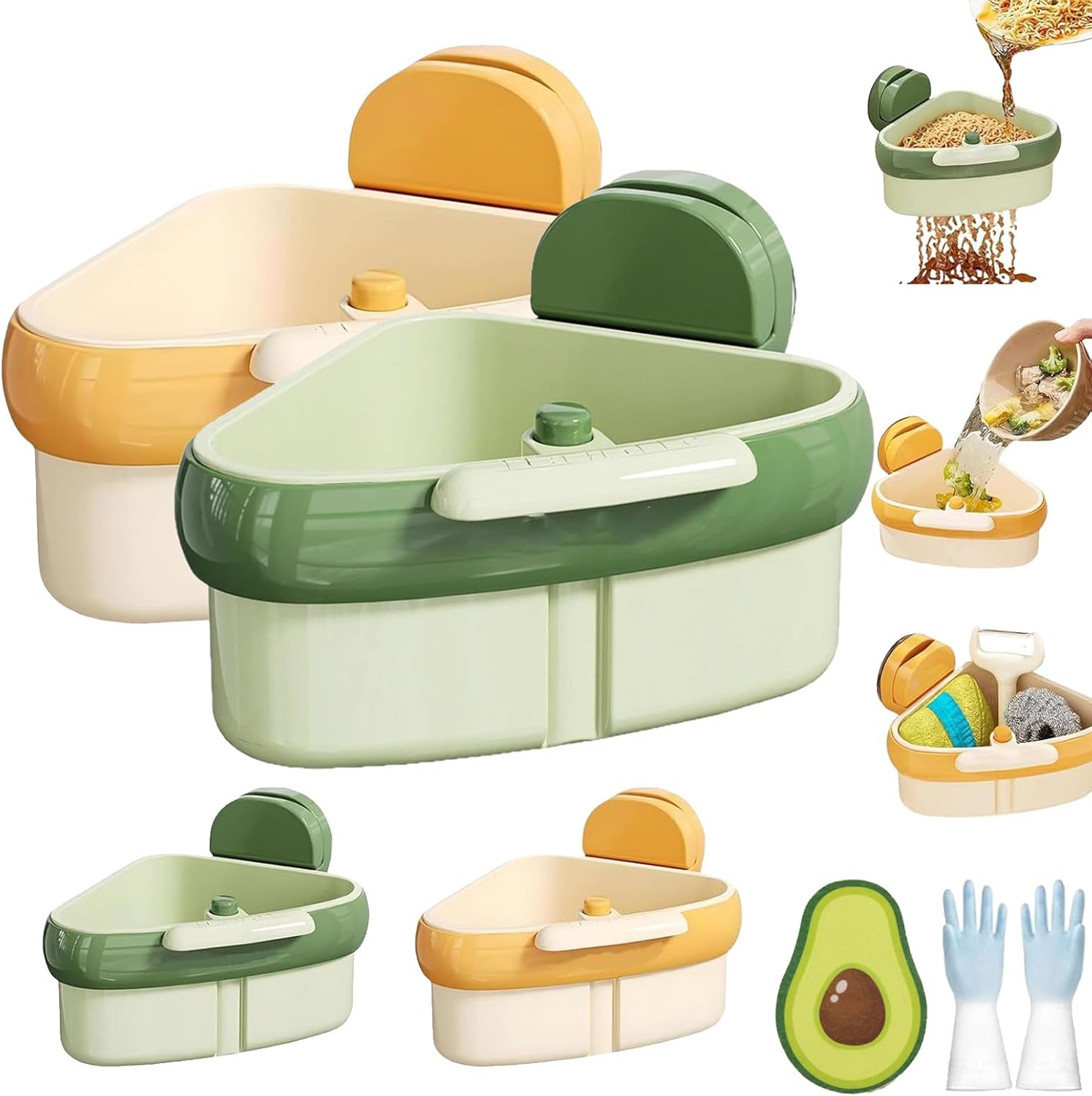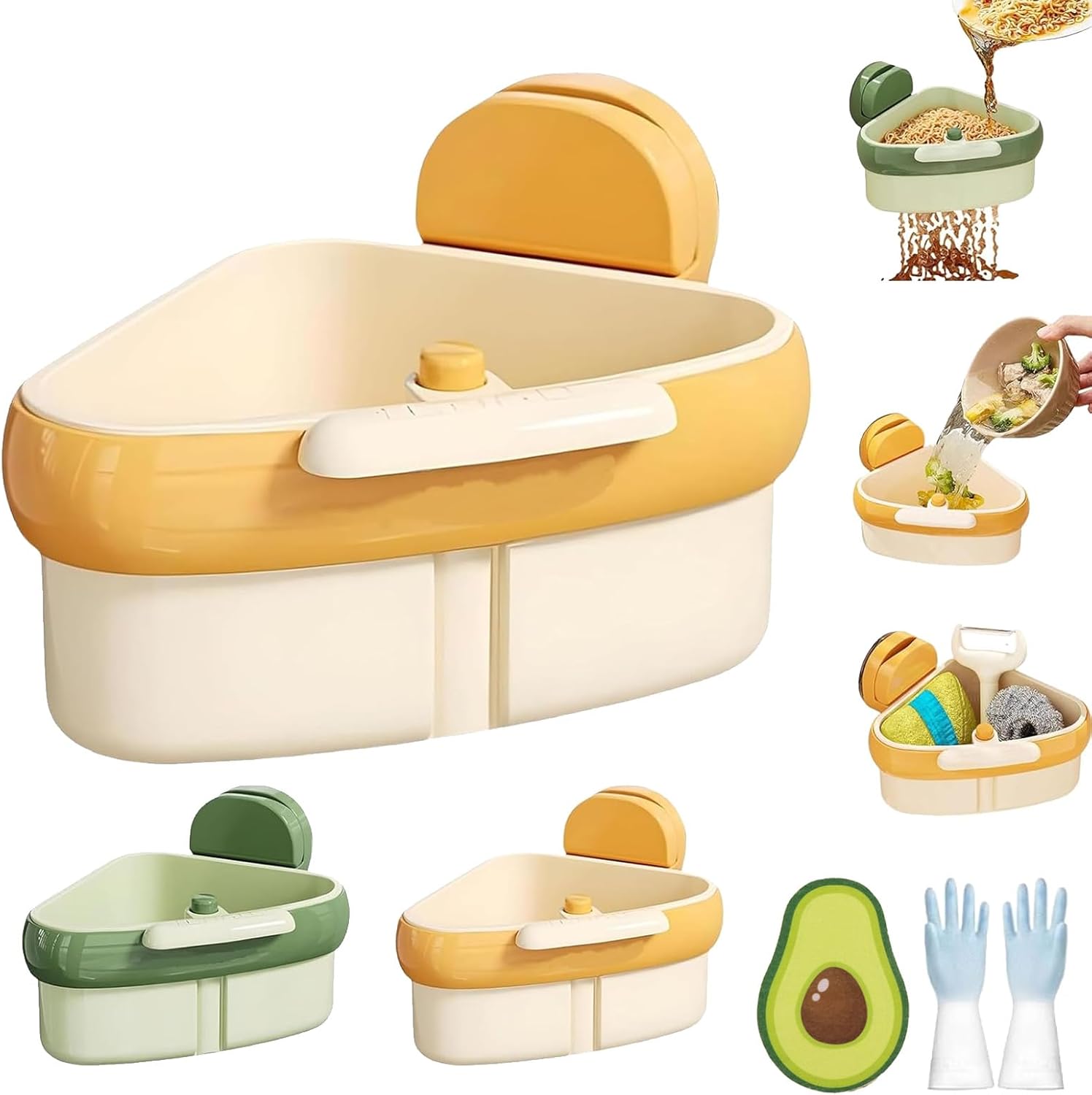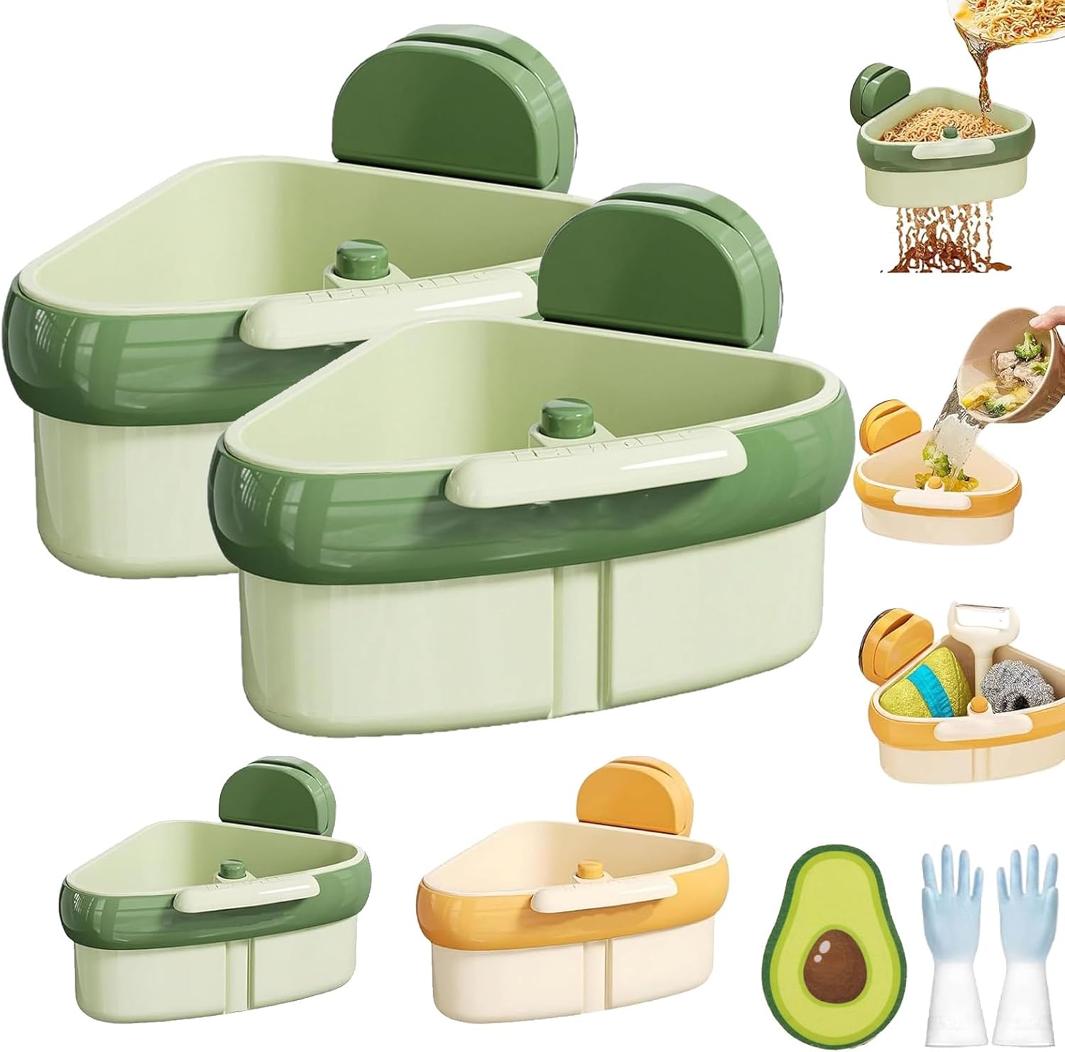 Curetoaway – Crépine d'angle à ventouse pour évier autonettoyante, filtre d'angle triangulaire automatique pour évier de cuisine, récupérateur de déchets alimentaires (vert)