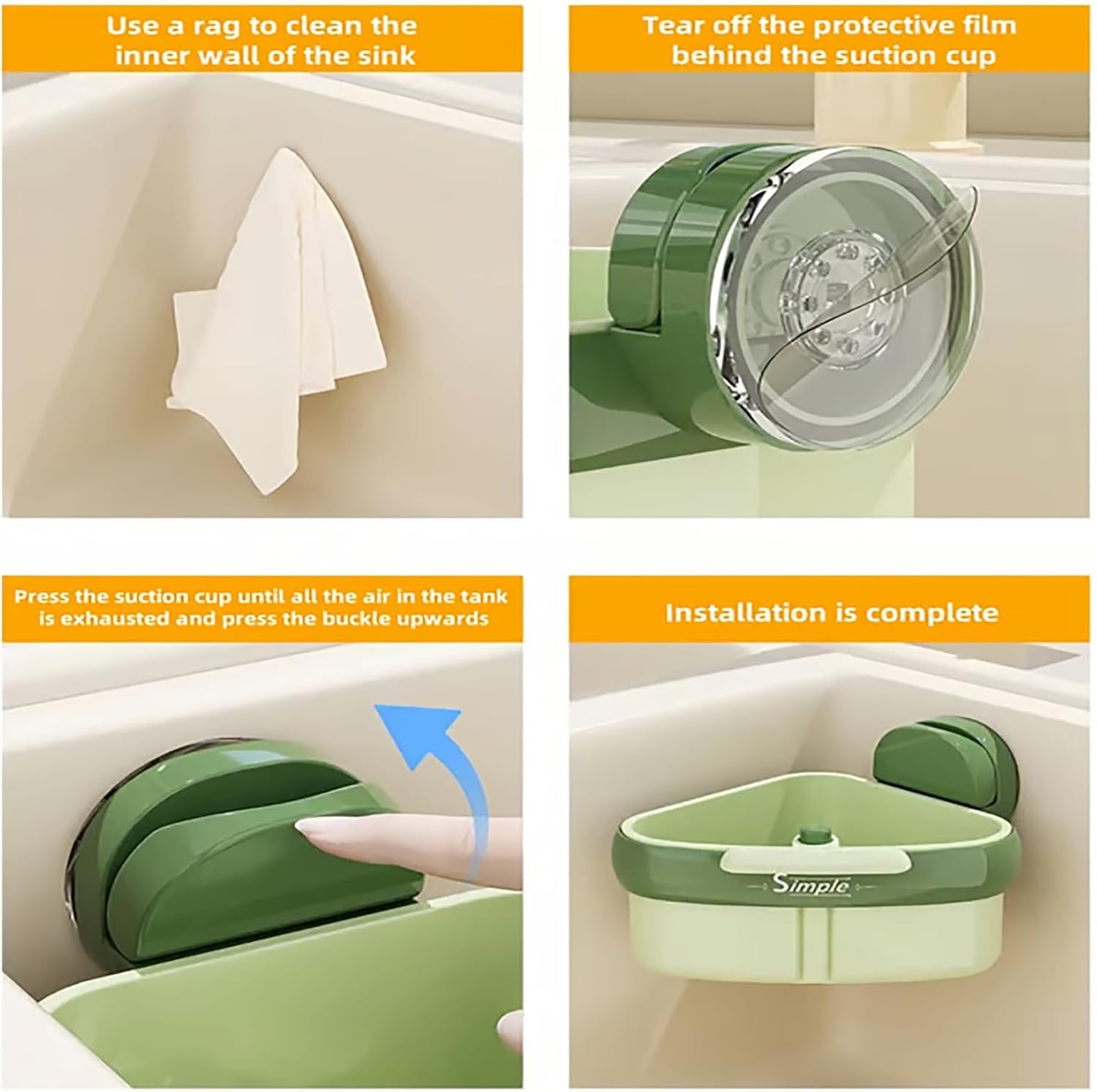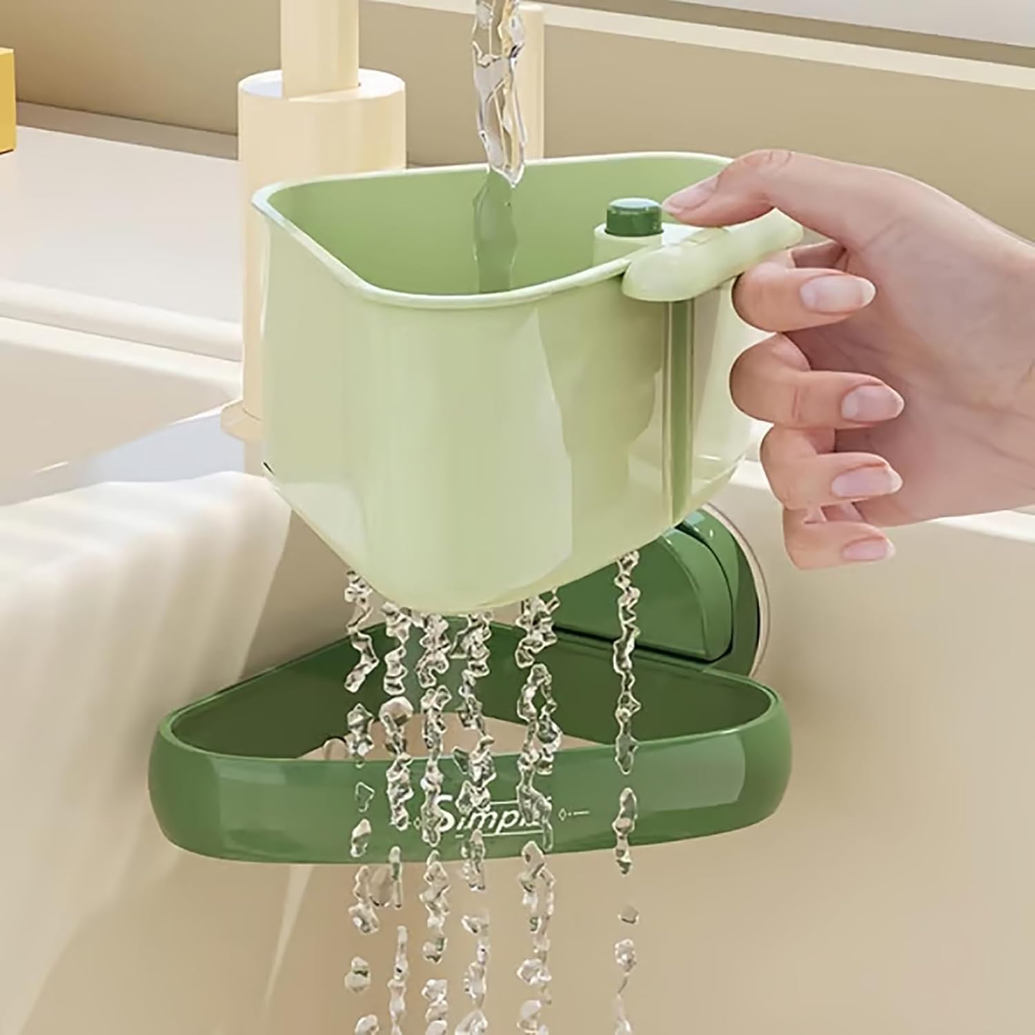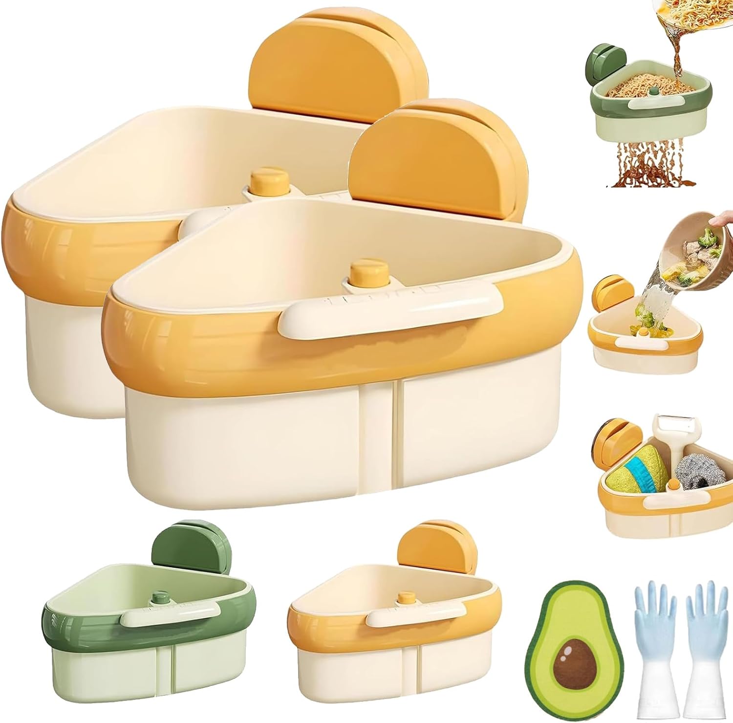 Curetoaway – Crépine d'angle à ventouse pour évier autonettoyante, filtre d'angle triangulaire automatique pour évier de cuisine, récupérateur de déchets alimentaires (vert)