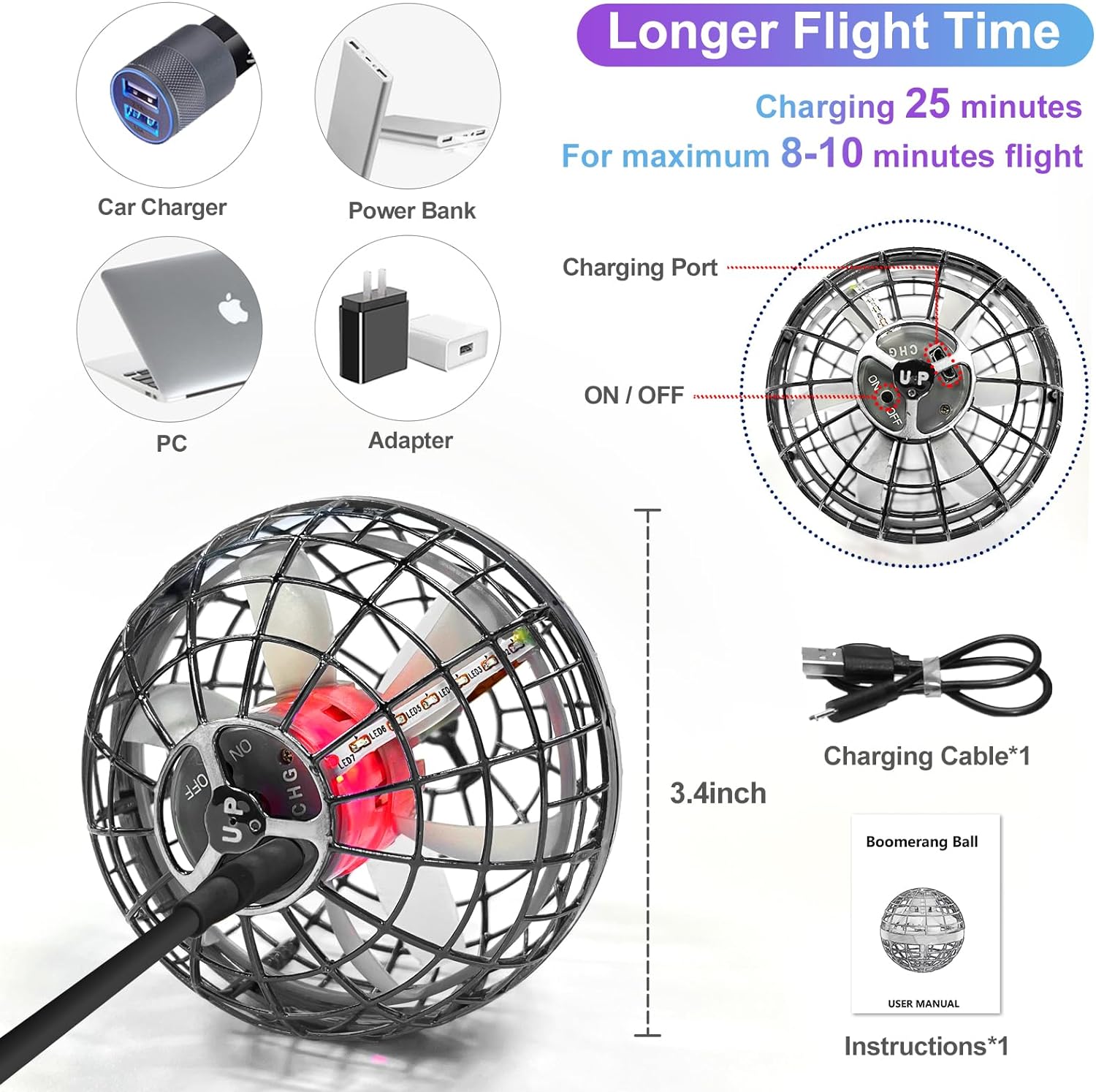 🎁【Perfect Gift】The floating orb ball is a cool party favors for Christmas, birthdays, Halloween, Thanksgiving Day, Easter, Children's Day. Flying boomerang ball Is suit for adults, kids, teenagers and the elderly. They can enjoy floating ball toy whether indoors or outdoors