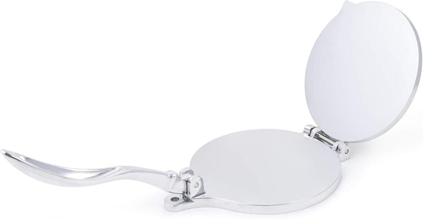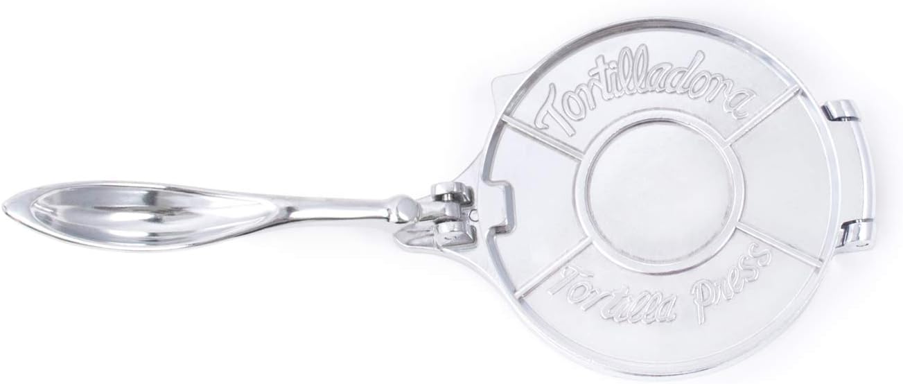 CAST IRON - outperforms standard aluminum tortilla pressed in stability, longevity, and its ability to produce a flat, even press.