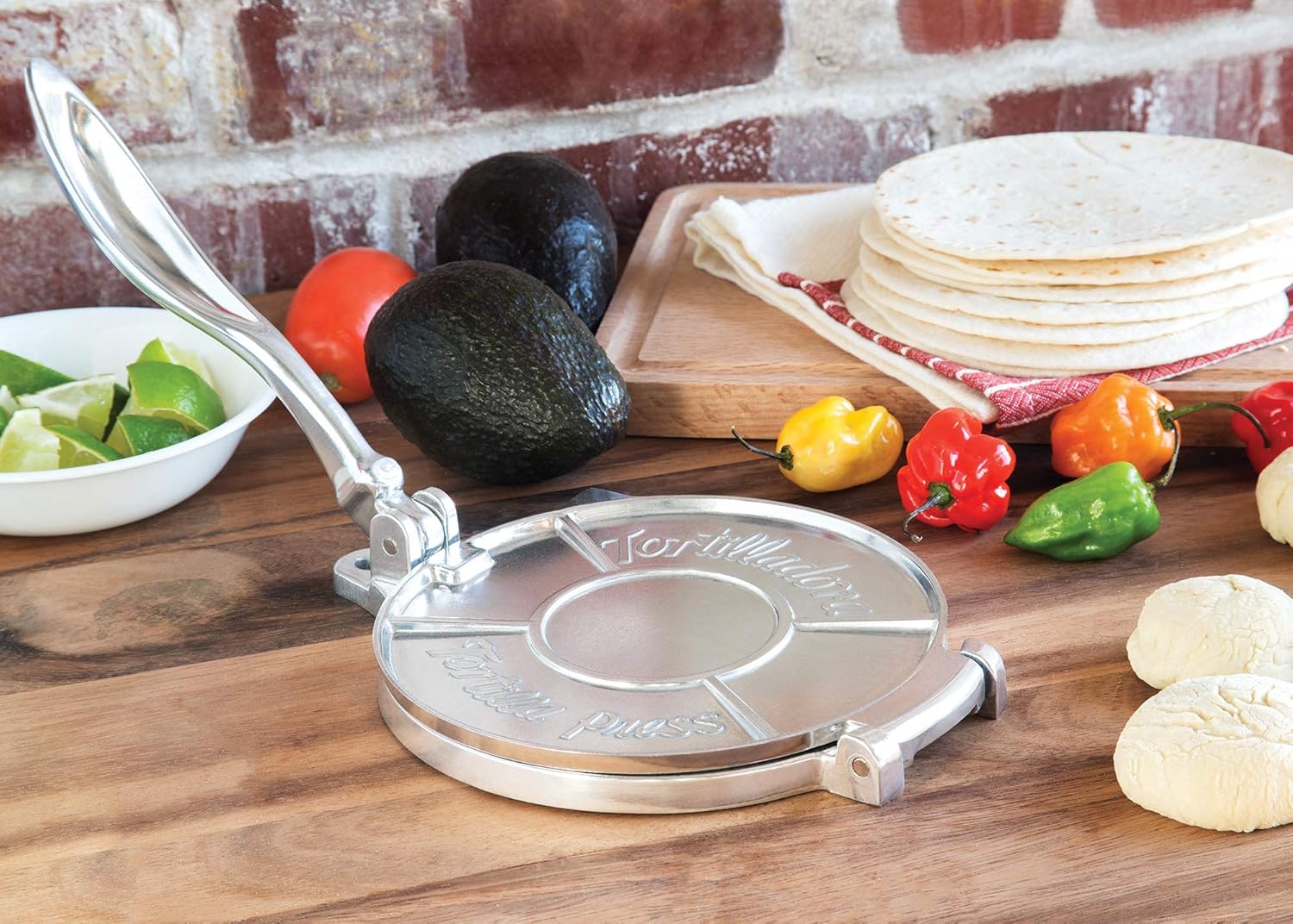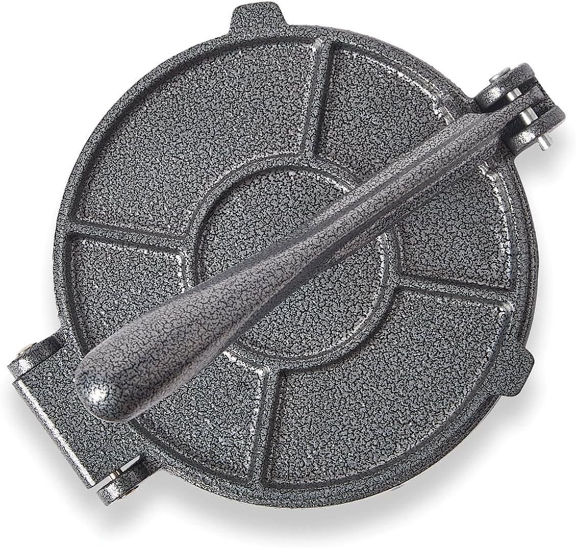HEAVY WEIGHT TORTILLA PRESS - made with a heavyweight Cast Iron press for durability and stability, Our tortilla press makes it easy for users to cook at home with their own fresh ingredients.