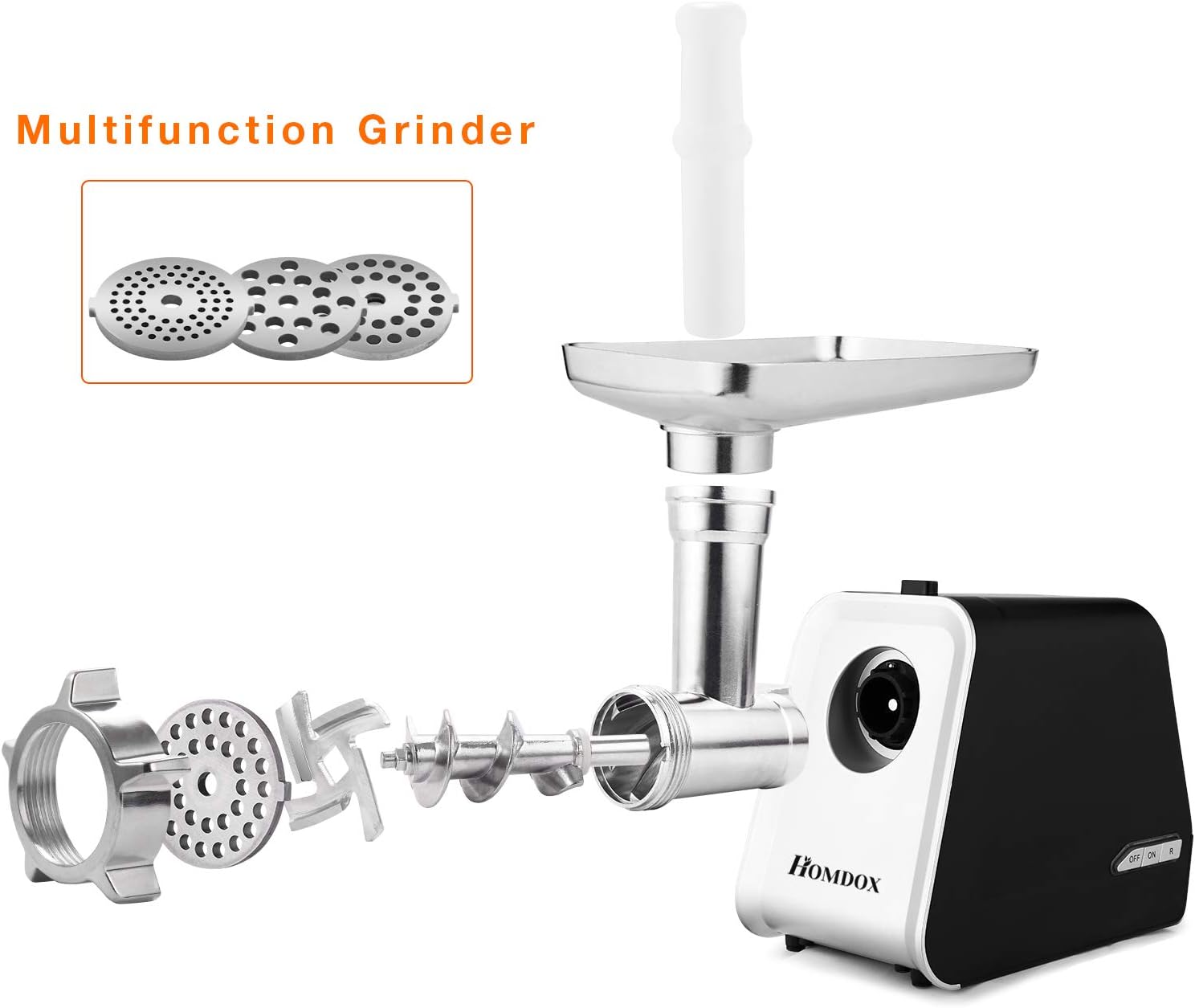 Hachoir à viande électrique, 2000 W, avec 3 broyeurs et tubes de remplissage de saucisses pour un usage domestique, machine à saucisses en acier inoxydable/noir