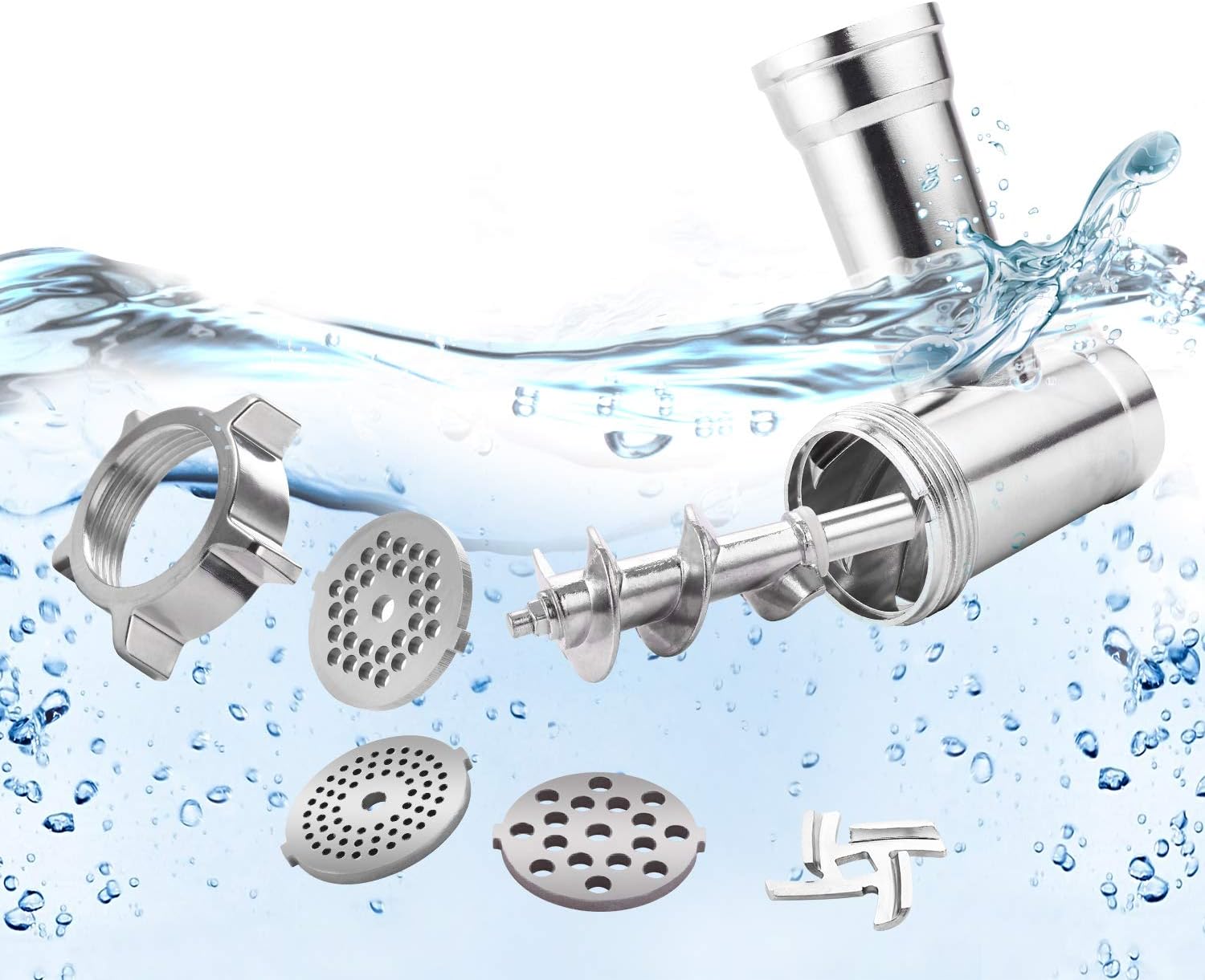 Multifonction : 3 plaques de coupe différentes pour moudre grossièrement, moyen et fin de la viande. Peut non seulement être utilisé pour la viande, mais aussi le poisson, l'herbe de blé, le poivre, l'agaric, etc. 1 accessoire à saucisse, 1 lame de coupe, 1 poussoir alimentaire, 1 accessoire Kubbe. Excellent ensemble de hachoirs à viand