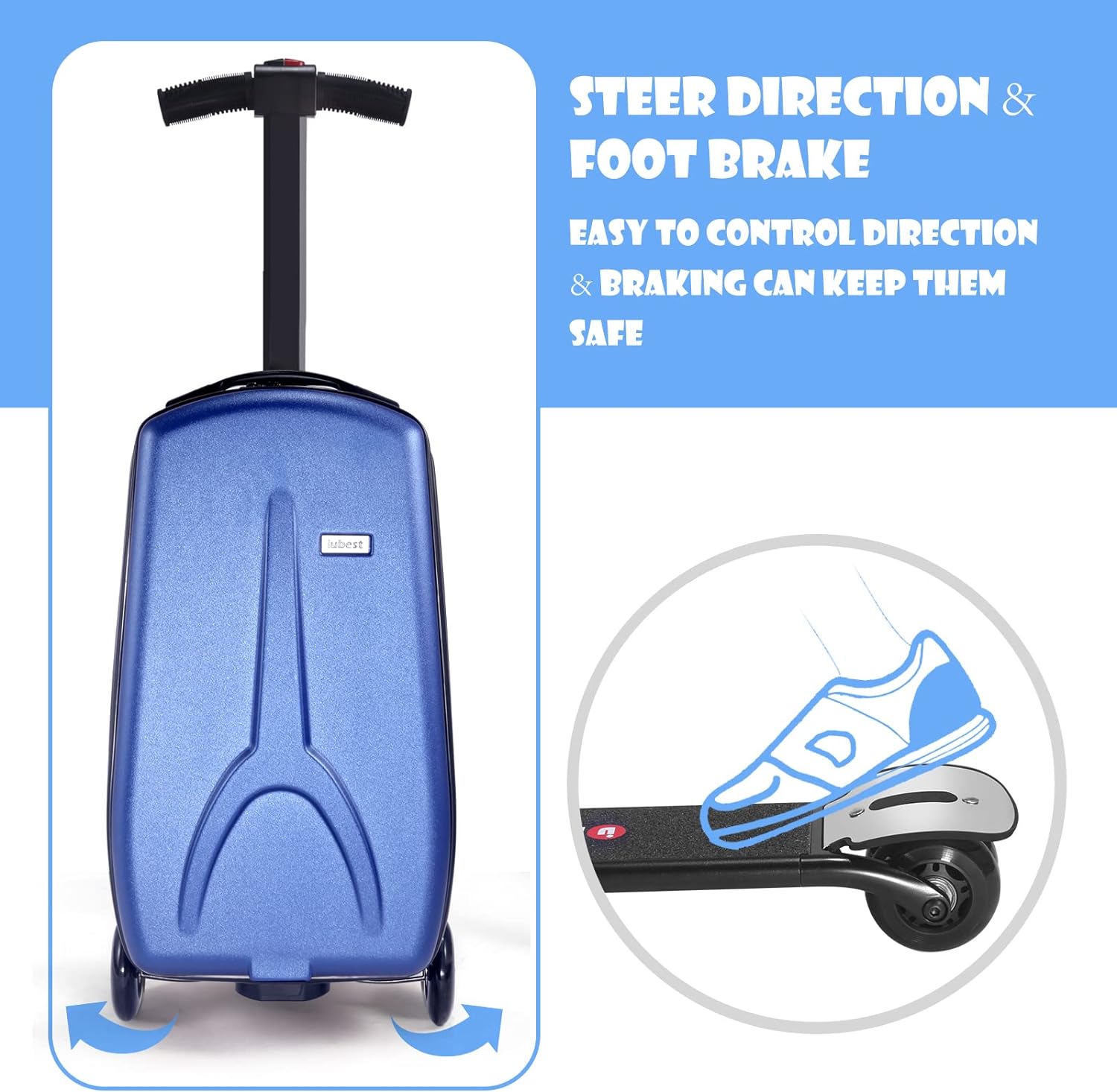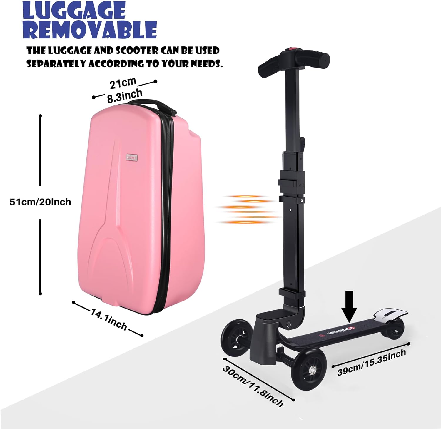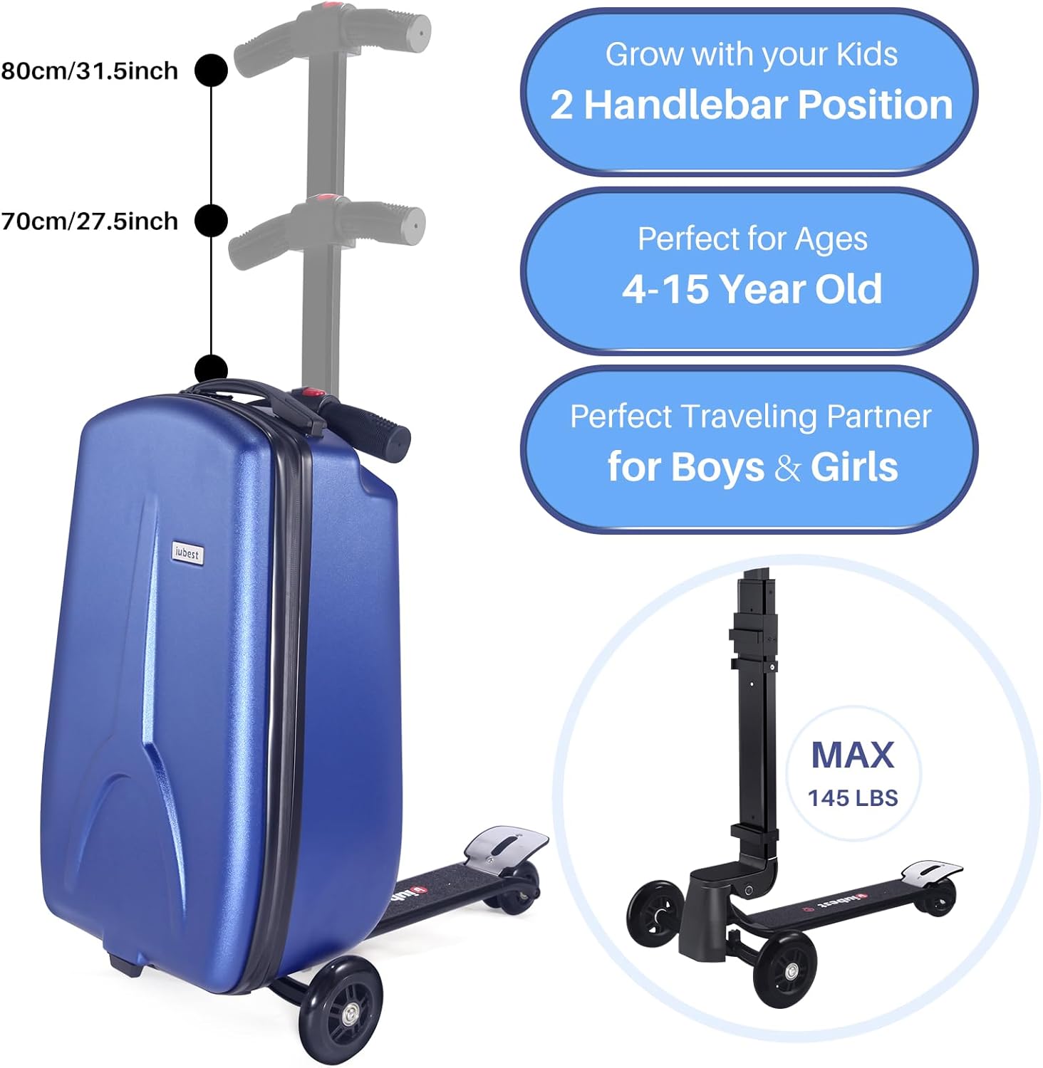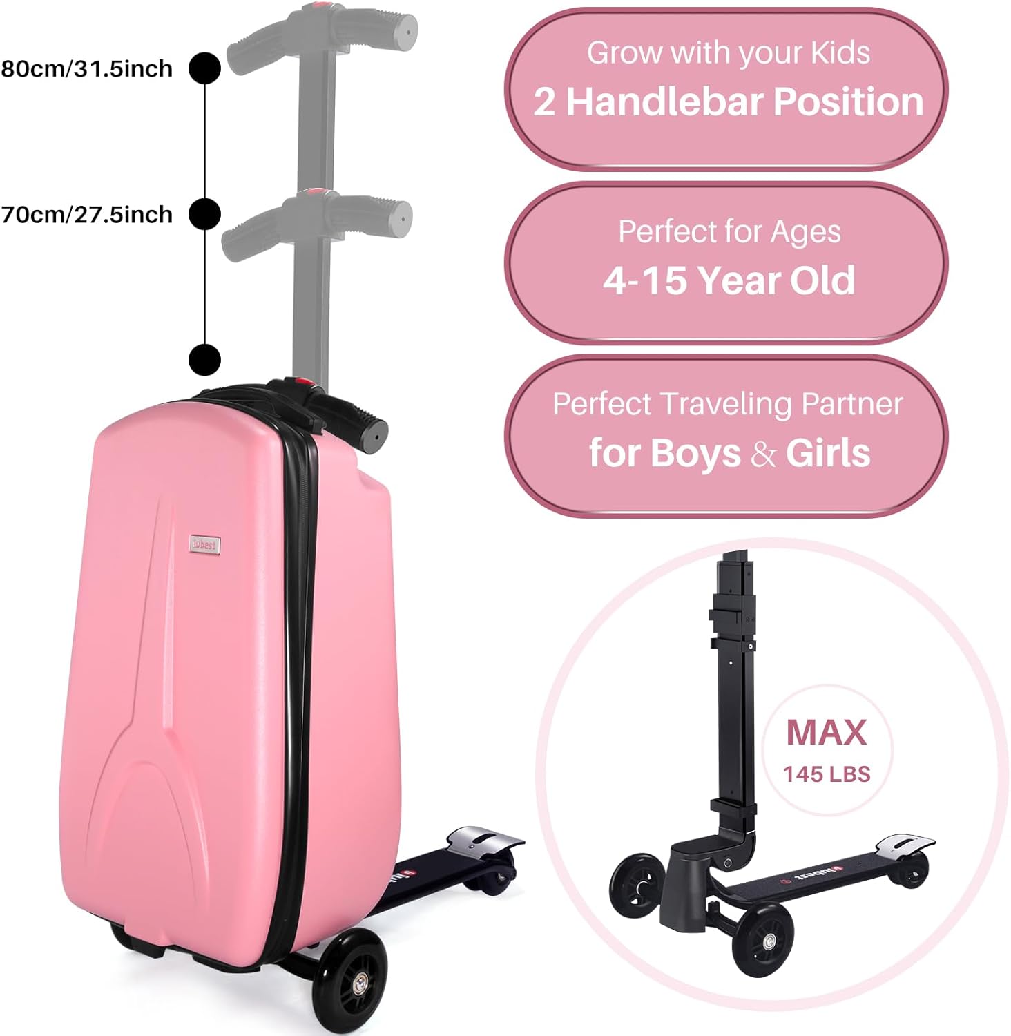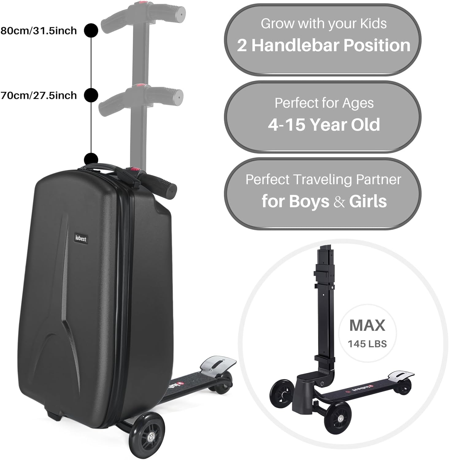 - 【Made for Kids】This scooter luggage is designed for kids, it's Max loading weight is 65kg/145LB, Slip-proof standing deck and handle bar to ensure safe scooting, it is a good choice for the kids age 4-15years old