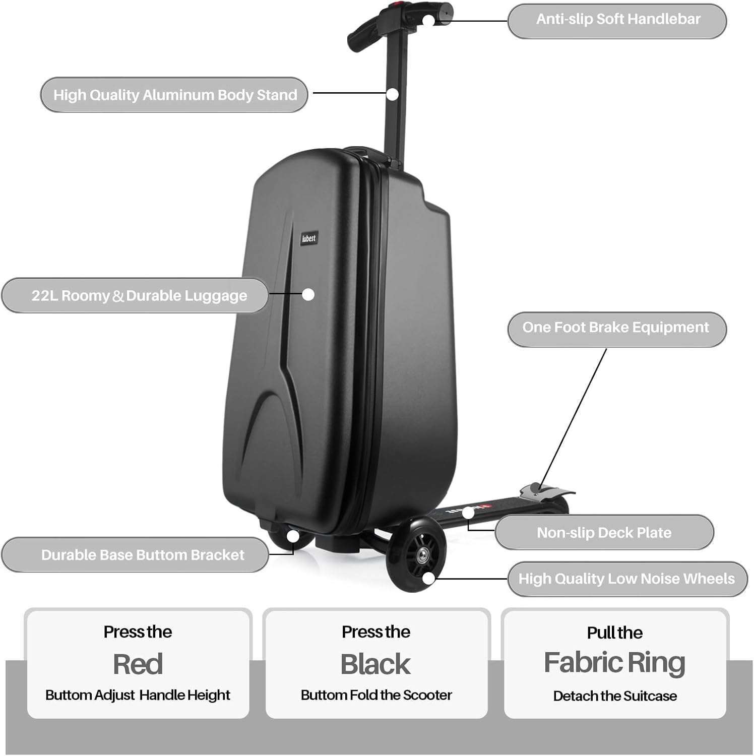 - ★Steerable and Separable: iubest carry-ons scooter luggage suitcase can hold riders up to 331 lbs and suitable for adult, teens and children age 6-12 . Our scooter suitcase can help you save time on the way. 120 degree steering, box and the scooter can be separated.
