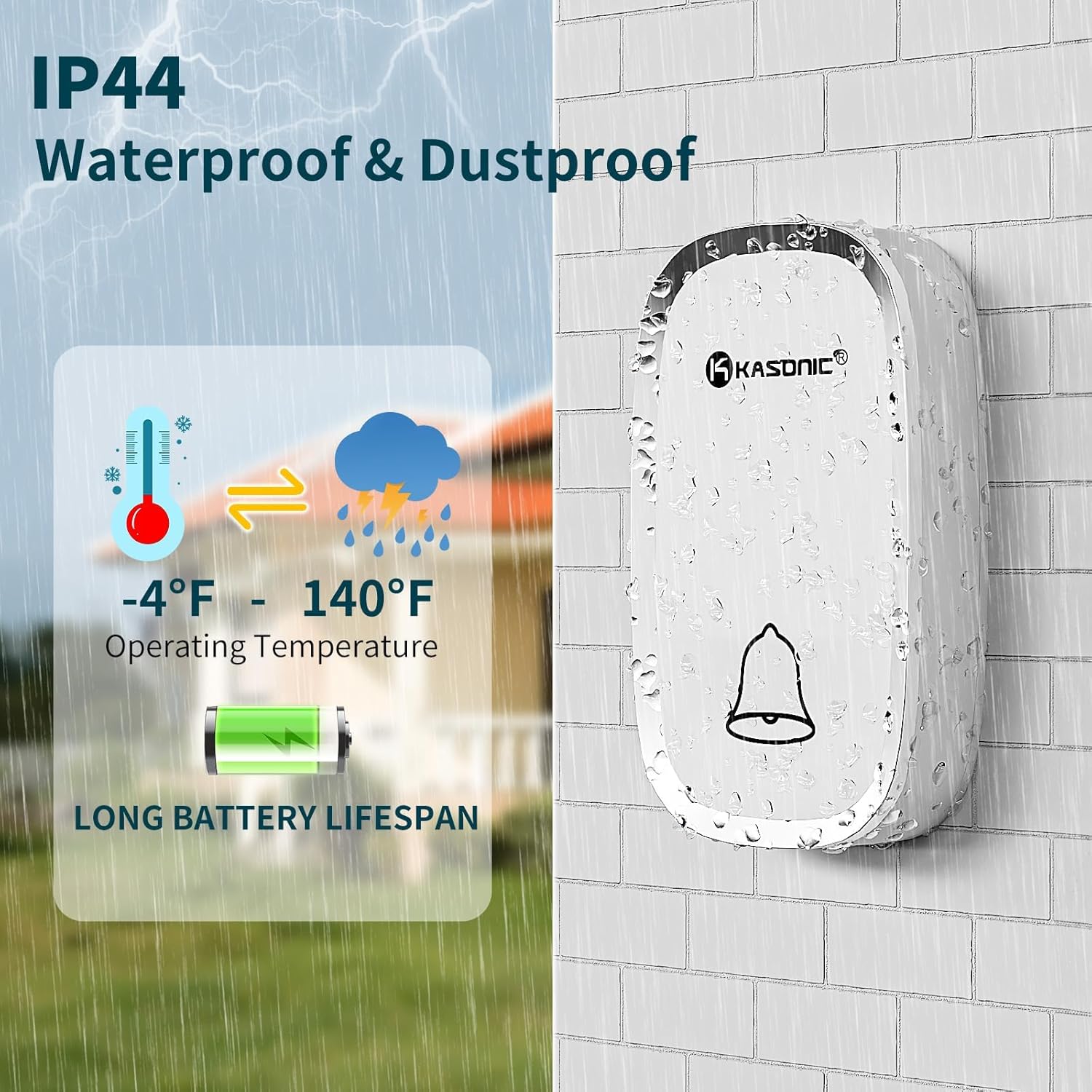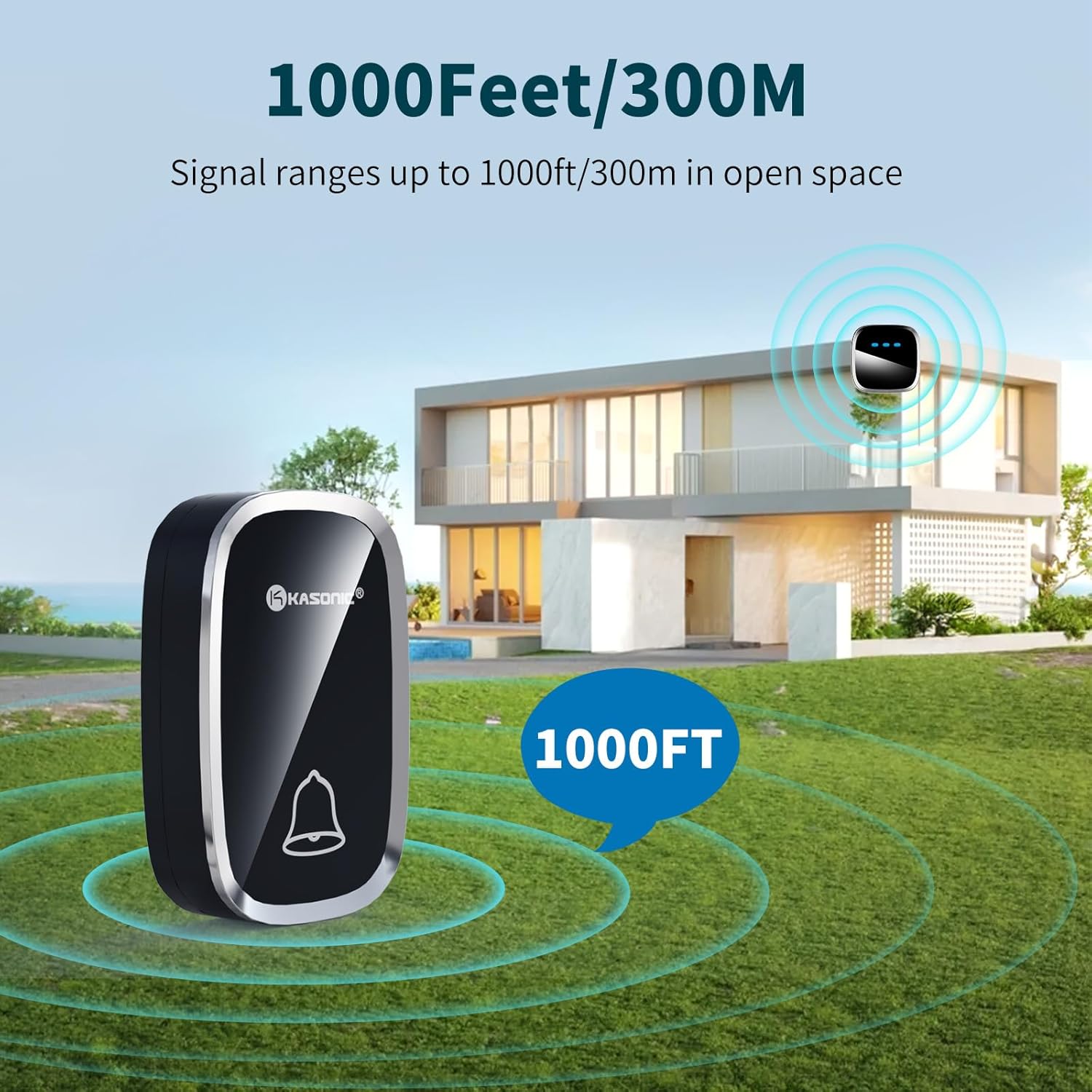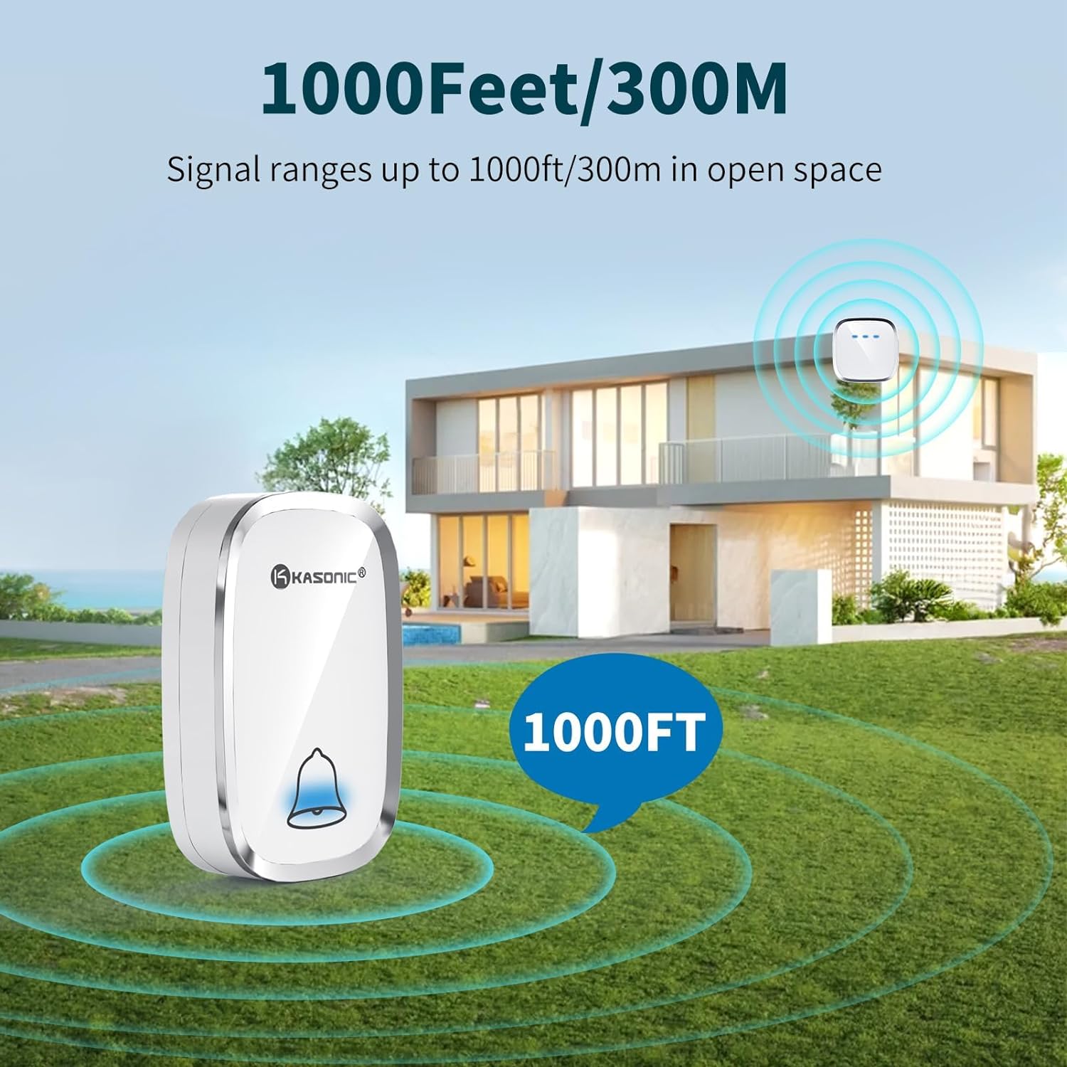 - 🔔Long Operating Range - Kasonic Wireless Door Bell operate range up to 1,000FT/300M in open area ensures you to hear the bell and answer the door in time. No need to worry about interfering with other devices in your home or neighbors.