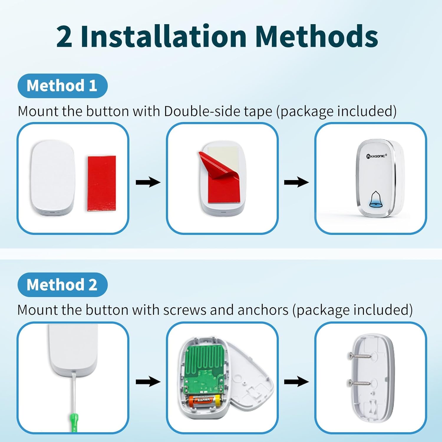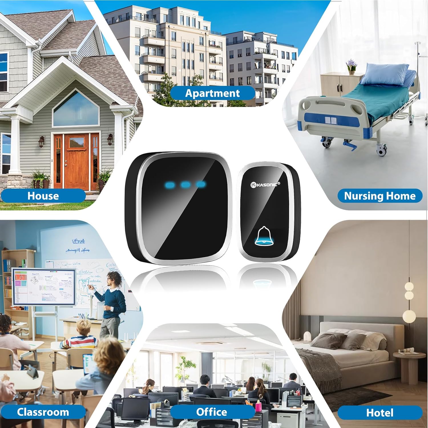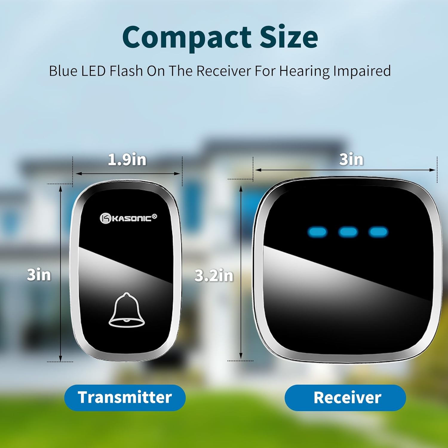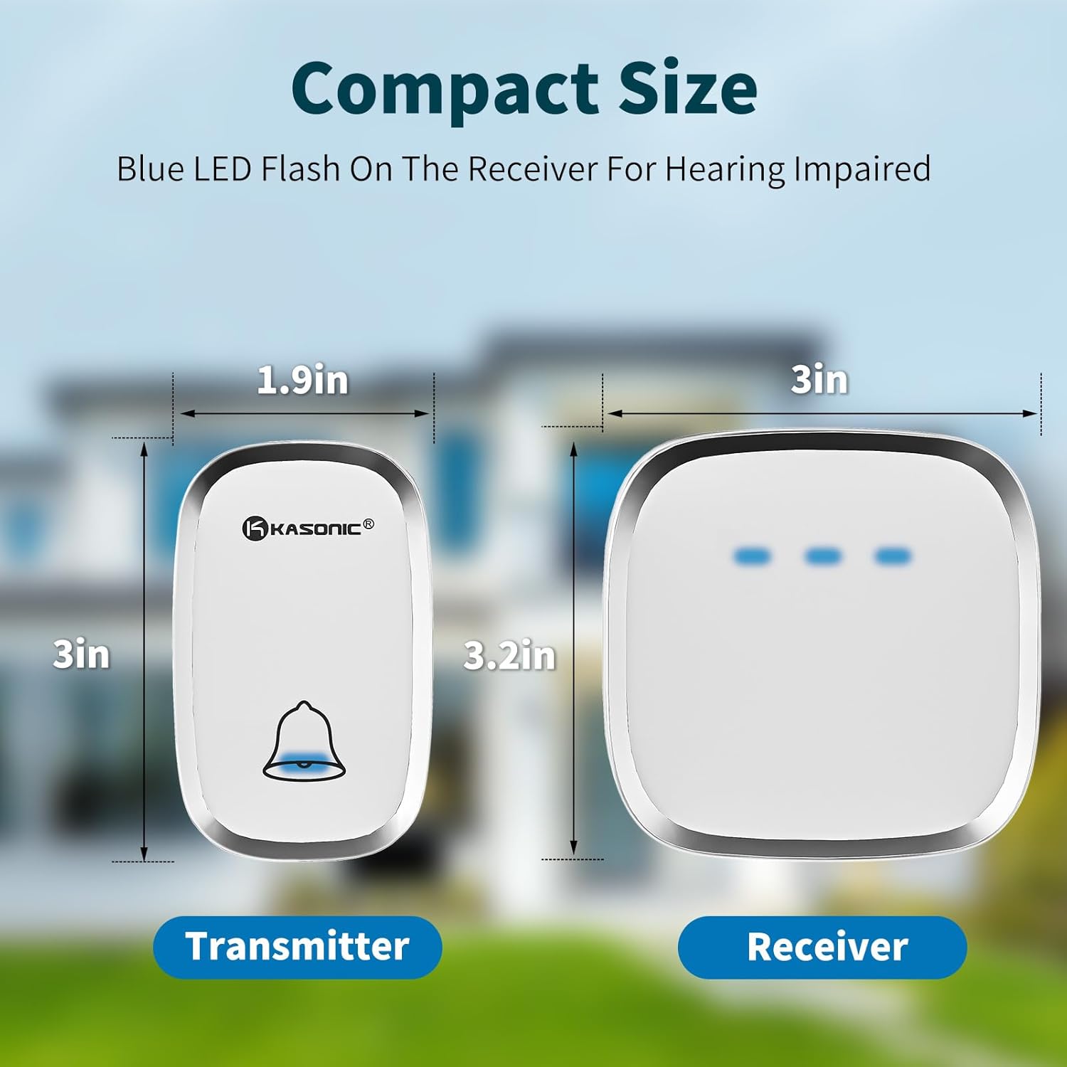 - 🔔Long Operating Range - Kasonic Wireless Door Bell operate range up to 1,000FT/300M in open area ensures you to hear the bell and answer the door in time. No need to worry about interfering with other devices in your home or neighbors.