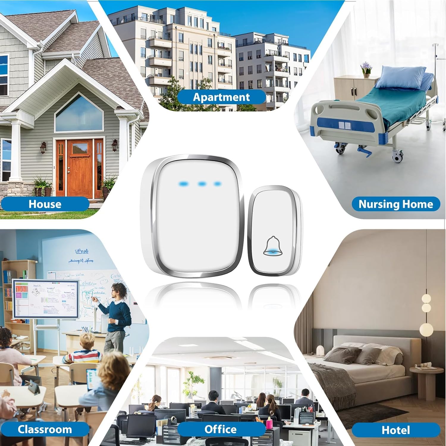 - 🔔Multi Use - It is fit for home, apartment, classroom, office, villas and more. You can use our doorbells to train dogs. Or using it to quiet down classrooms, when you ring the bell, the students will know it's time to move on to the next group. And it can be a paging device for the elderly/disabled, can signal for care when they need it most.