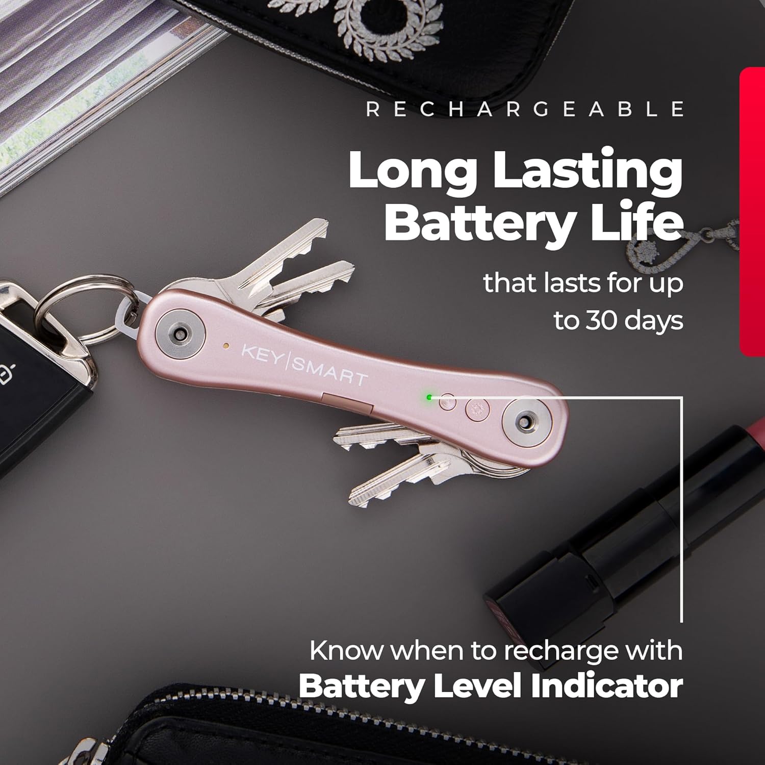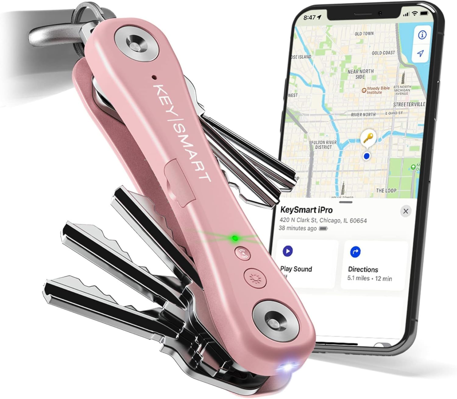 • Works with Apple Find My app to help you track your keys from your iPhone.