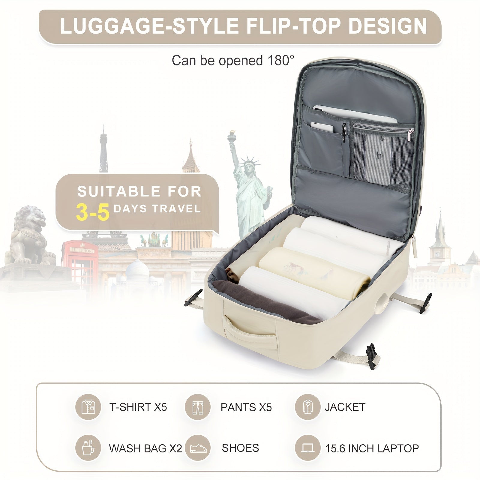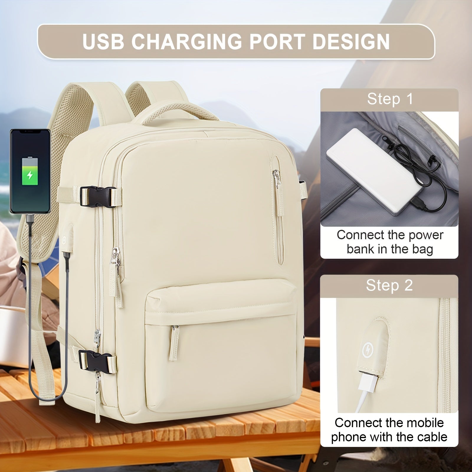 Large Travel Backpack, Carry On Backpack, HikingBackpack, Waterproof Outdoor Sports RucksackCasual Daypack, School Bag, Fit 16 Inch Laptop With USB Charging Port