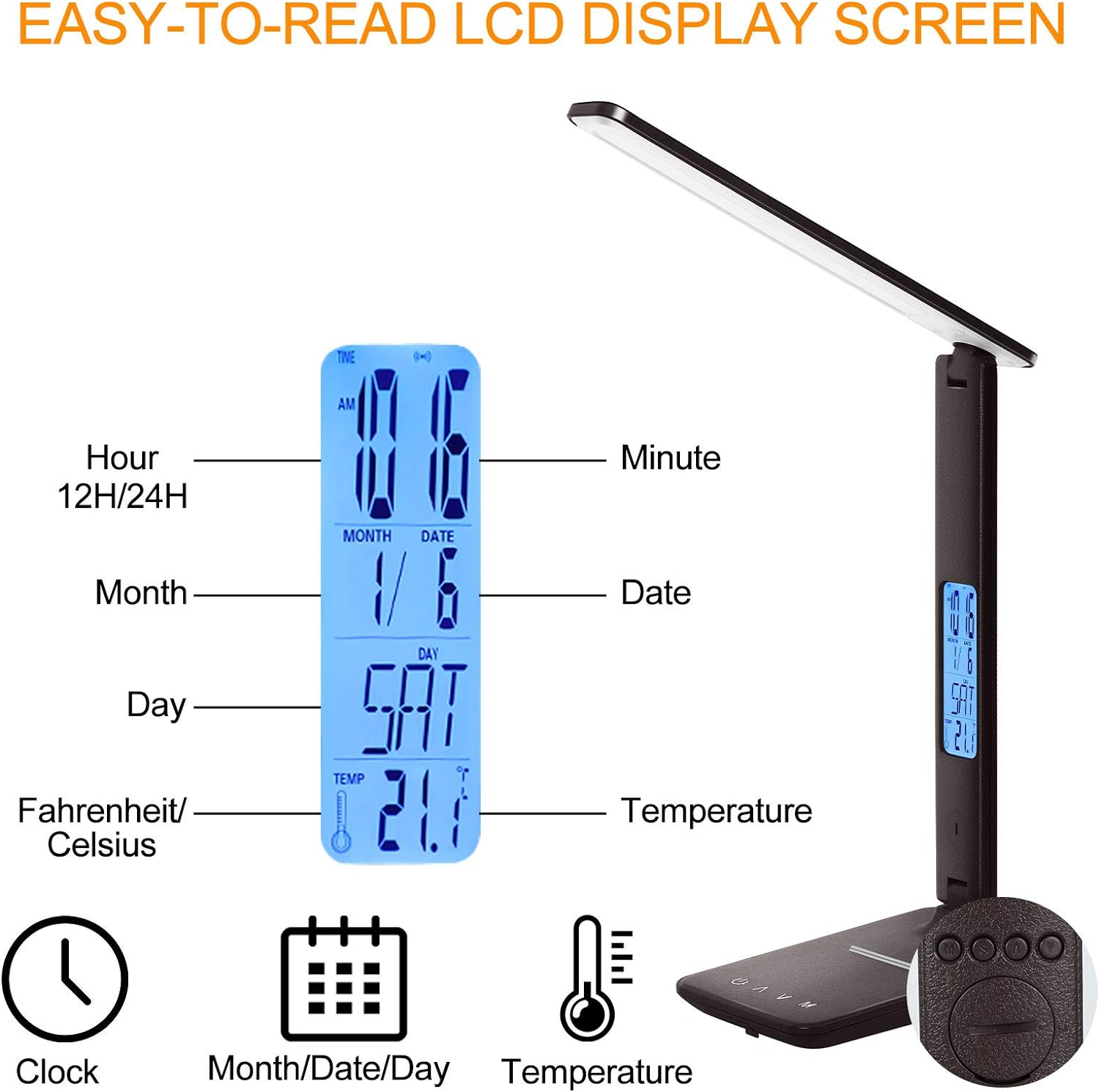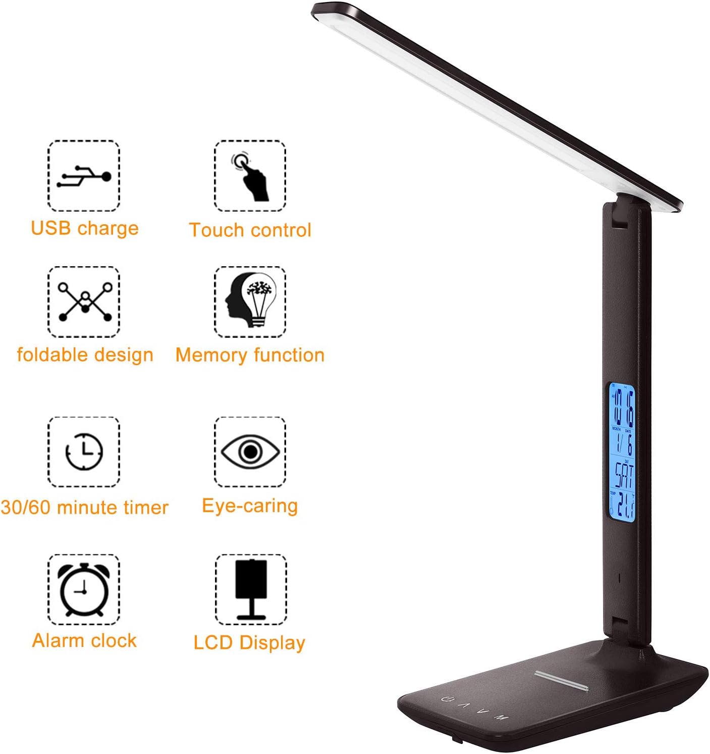 LCD function: You can press "On/Off button" for 3 seconds to turn on/off the LCD screen light. Includes a digital clock for time, date and temperature display. Set an alarm or time for your desk light.