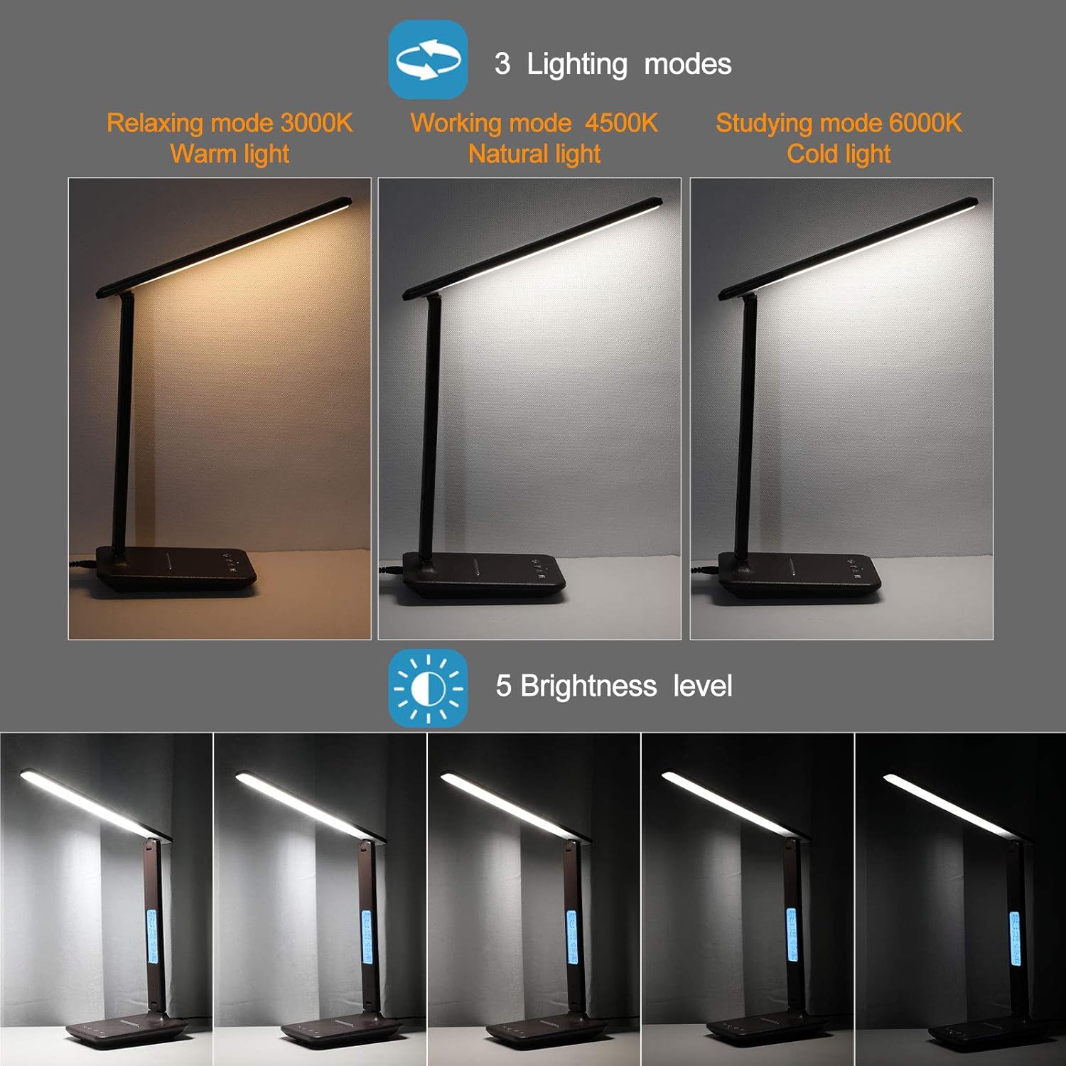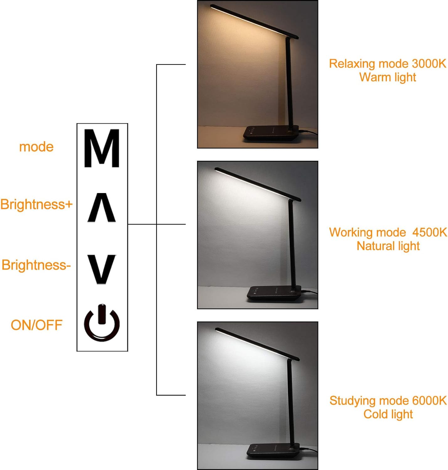 Eye-friendly LED panel&Reliable Quality :The table lamp with 45 full spectrum beads shines soft light,no flicker,no shadow,which avoids eye fatigue caused by flickering light and harsh glare effectively, desk lamp is ideal for reading, study for long time.There are 3 color temperature (from 3500K to 6000K) x 5 level brightness. You can switch the light source by touching the sensor switch