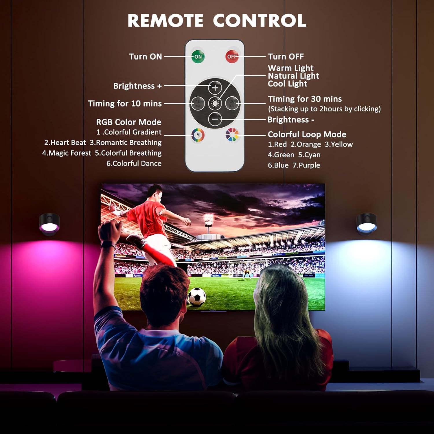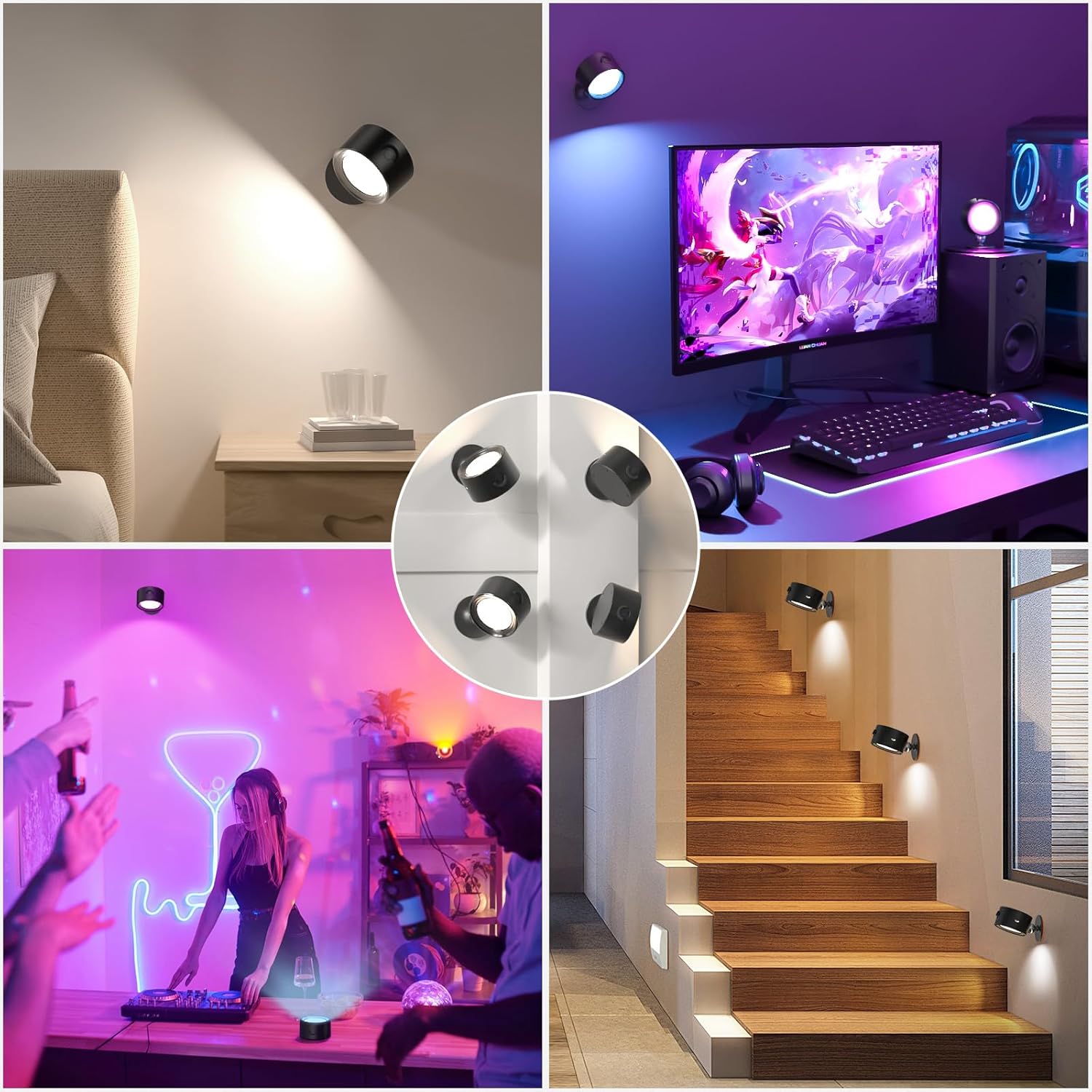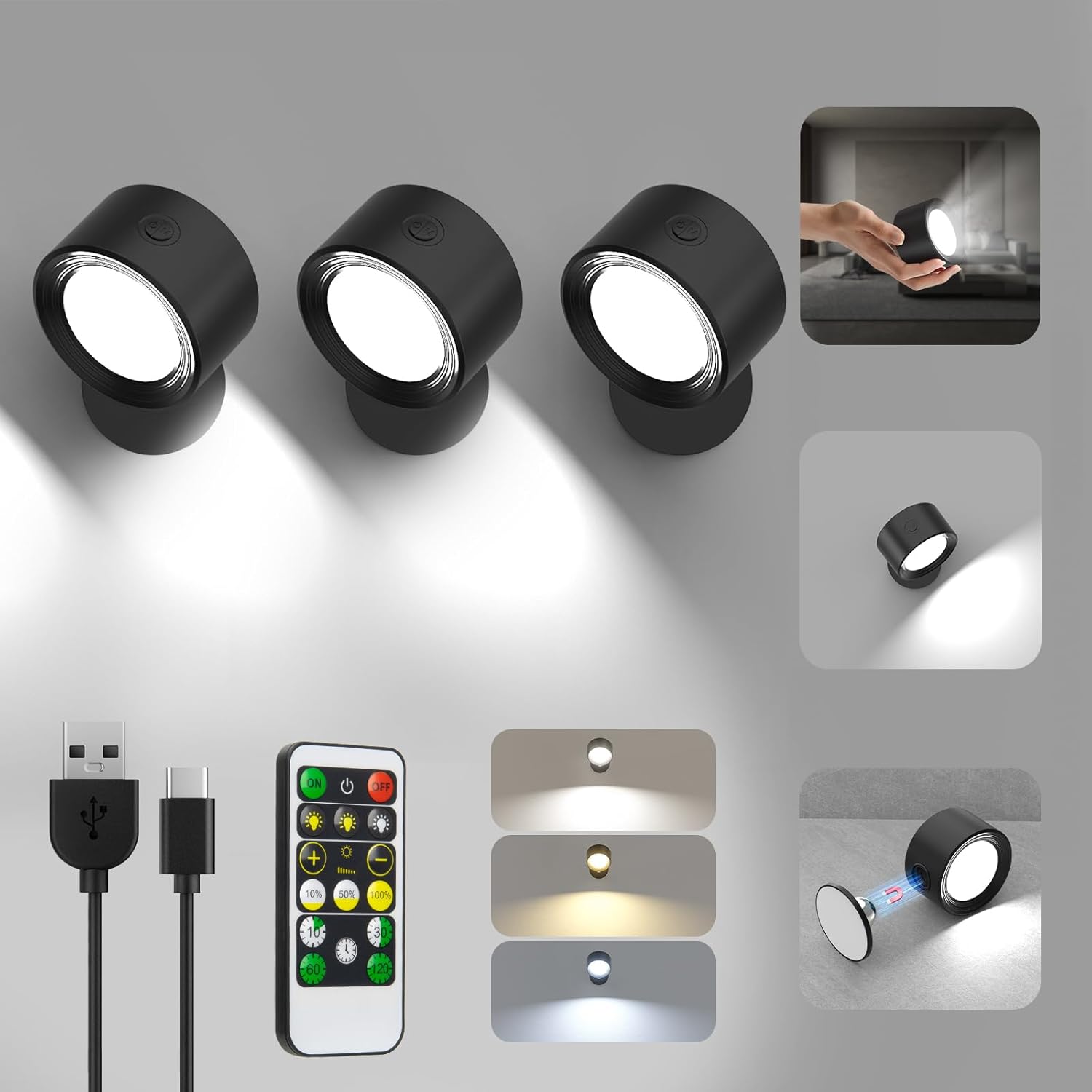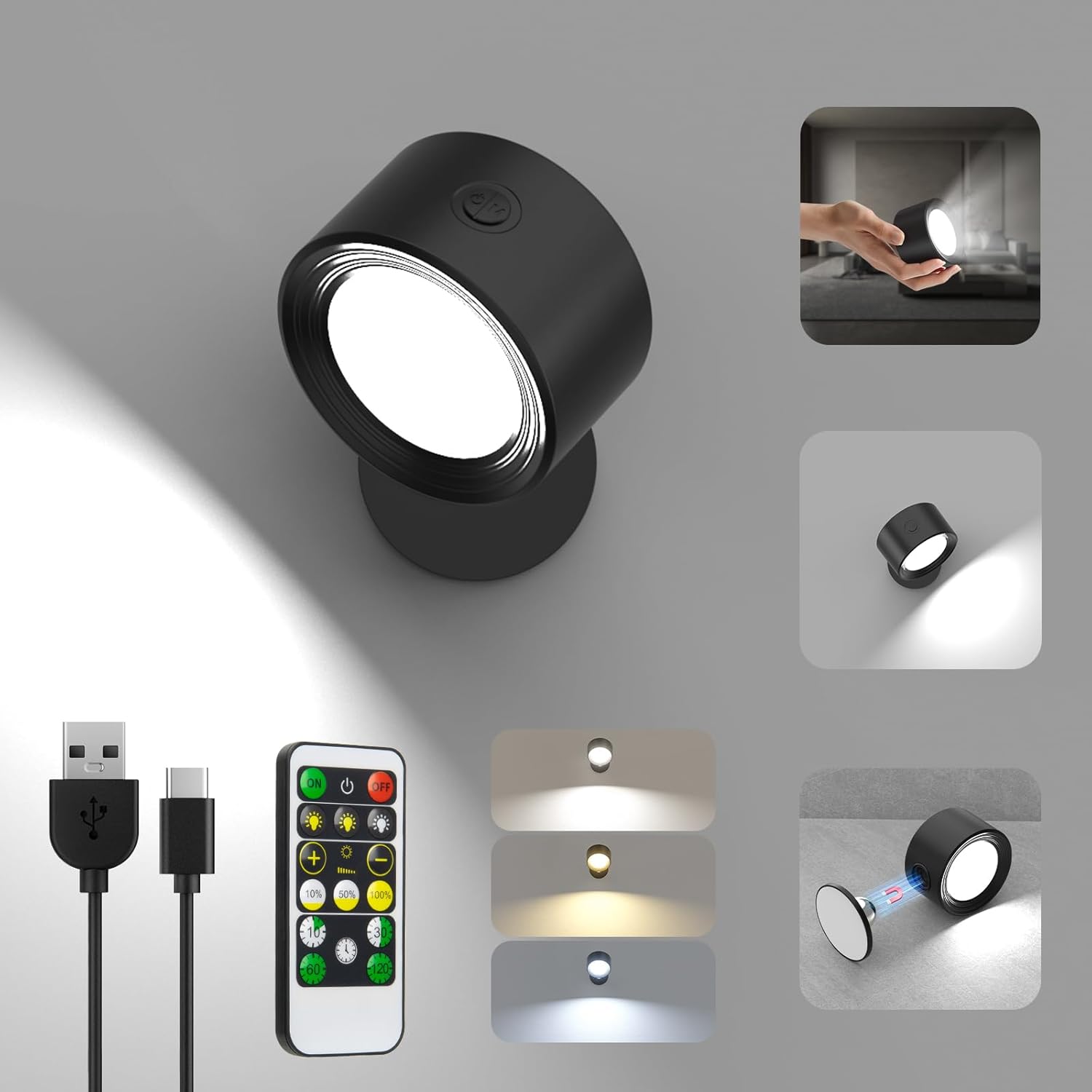 ✔️【3 Color Temperature & Dimmable Wall Sconces】Button control and remote control both can switch the color temperature(3000K-4500K-6000K). Also two ways for dimming this magnetic wall lights. Button control: Stepless(Long press). Remote control: ①stepless(Button”+”&”-”); ②4 levels: 10%,40%,80%,100%. You can choose the color temperature and the brightness based on different usage scenarios.