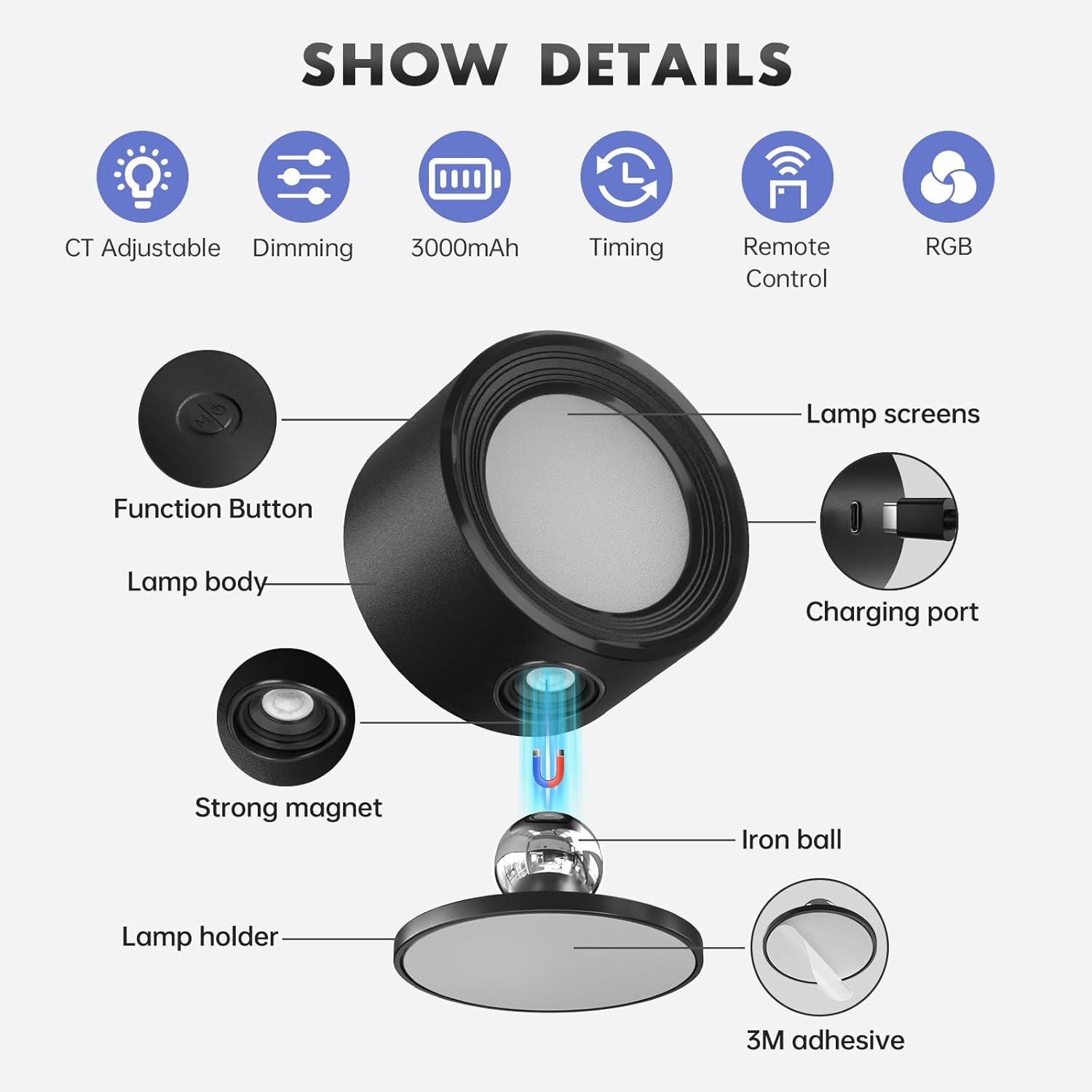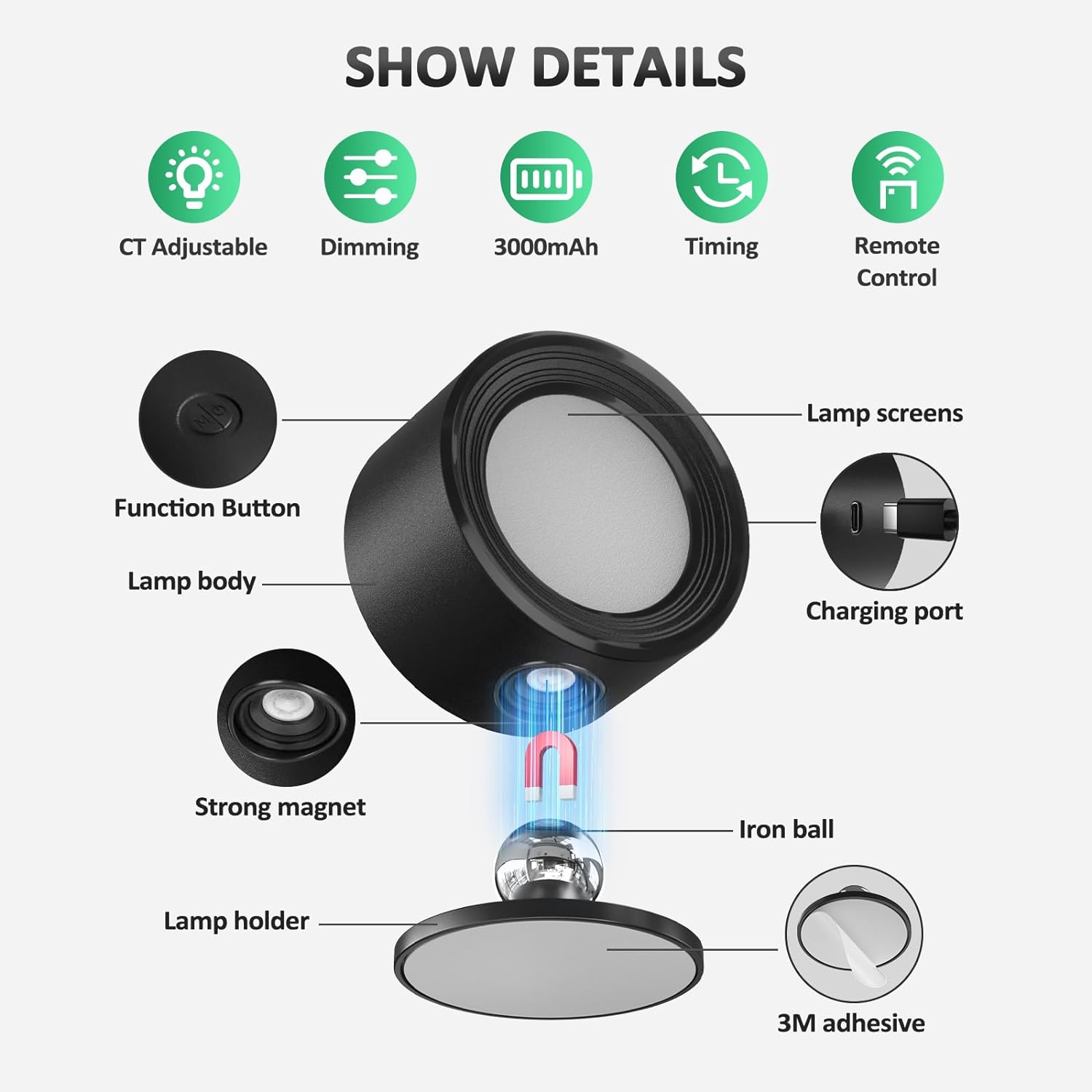 ✔️【360° Free Rotations Magnetic Ball】This bedside lamp use magnetic technology. The lamp body and lamp holder are adsorbed by a magnetic iron ball, so the lamp body can rotate at any angle. You can take it off the wall in 1s and use it as flashlight, removable light, portable light, emergency light etc. Adjust any angle according to your usage scenario.