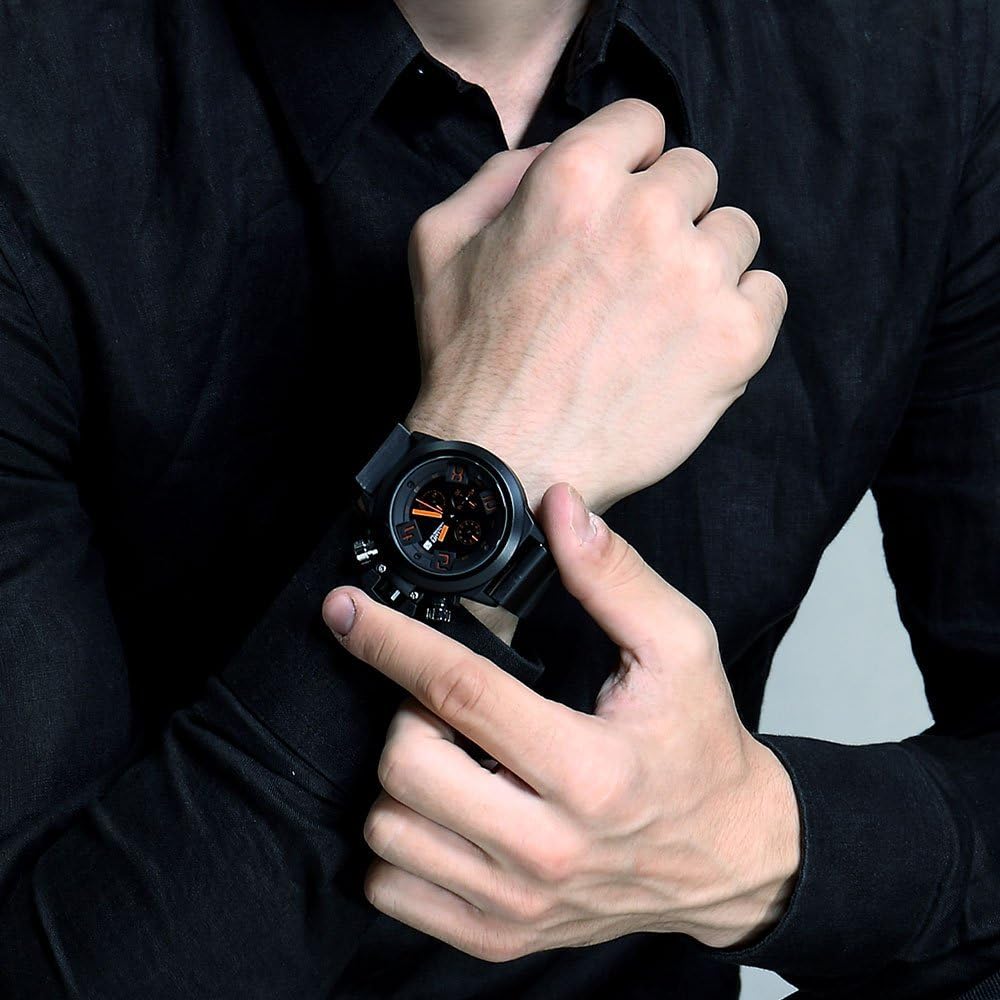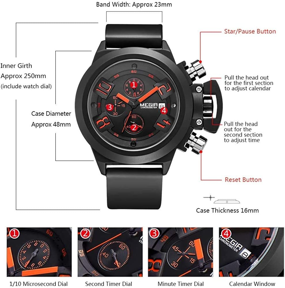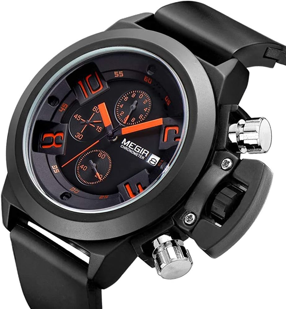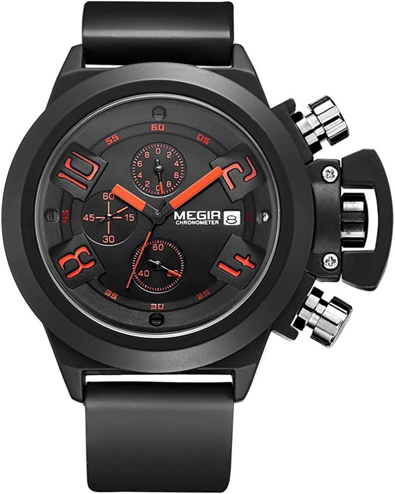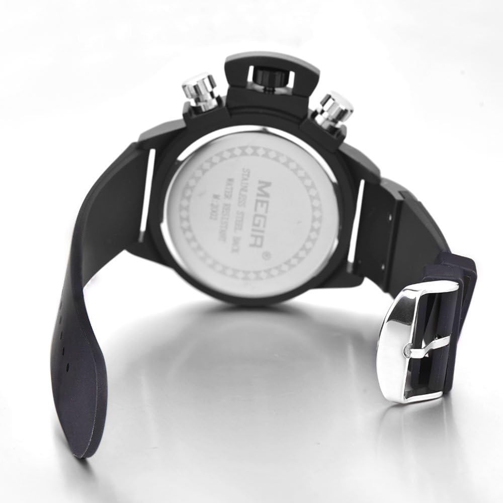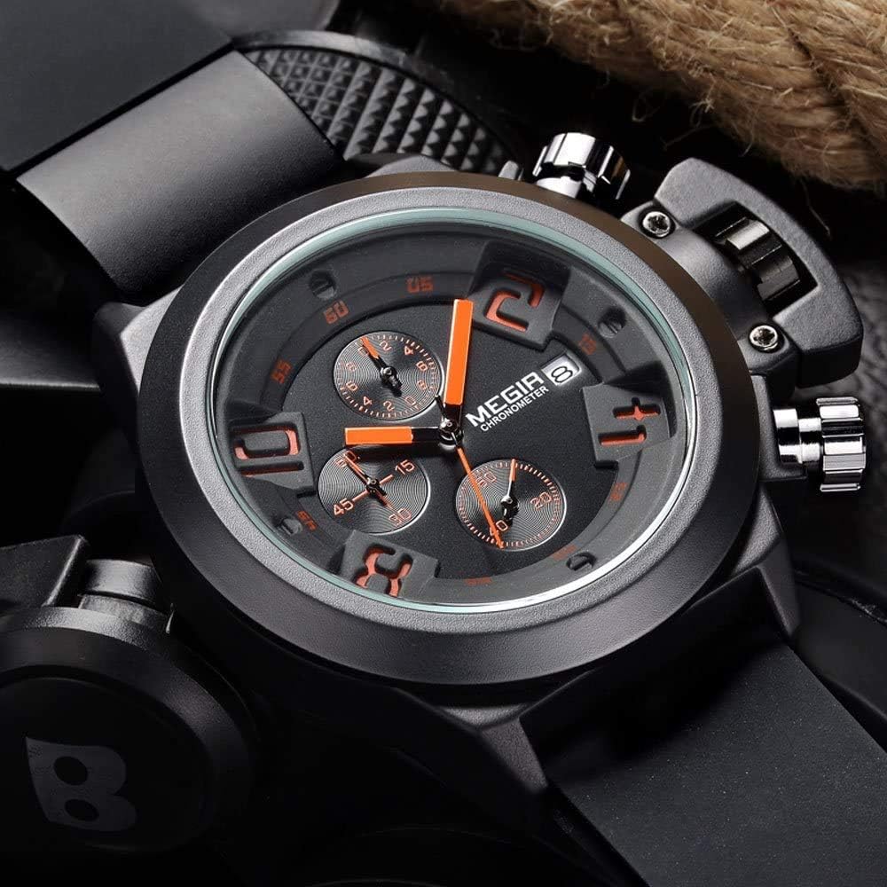 Megir Montre de sport à quartz pour homme avec grand cadran noir et bracelet en silicone noir