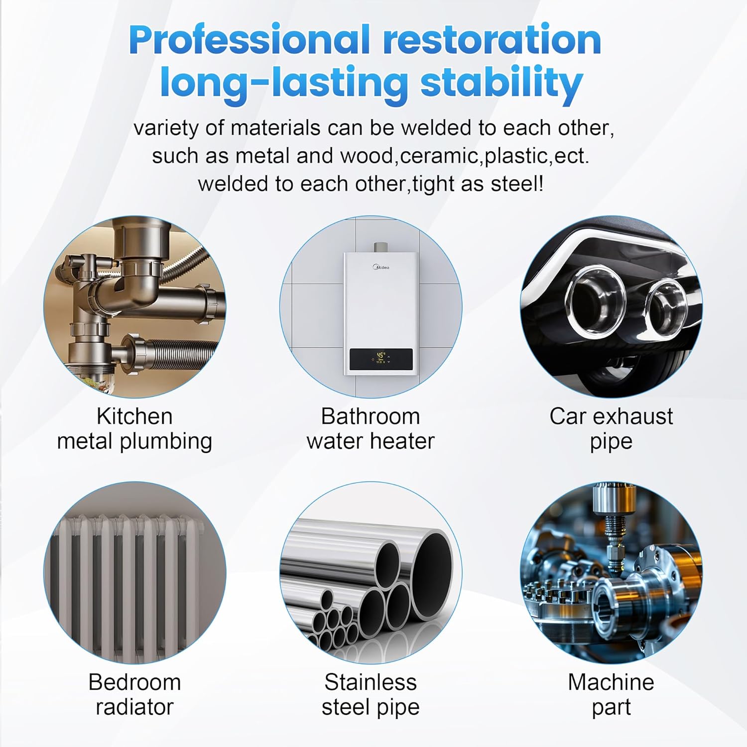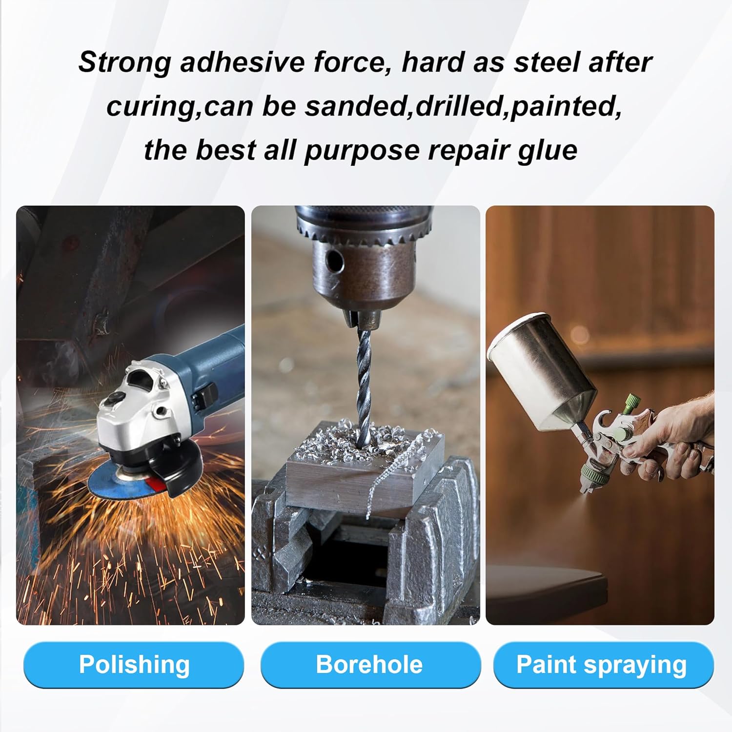 Usage Scenarios: Metal repair glue has good wear resistance, heat resistance, corrosion resistance and impact resistance. it meets the needs in most daily use scenarios. It can be cured at room, Whether you're shaping, tapping, filing, sanding or drilling, this metal-to-metal heavy duty glue meets a wide range of repair needs. It is a high strength, heavy-duty metal repair glue is a strongest glue for metal to metal, that replaces traditional complex welding methods and liquid metal is a universal repair adhesive for engineering repairs.