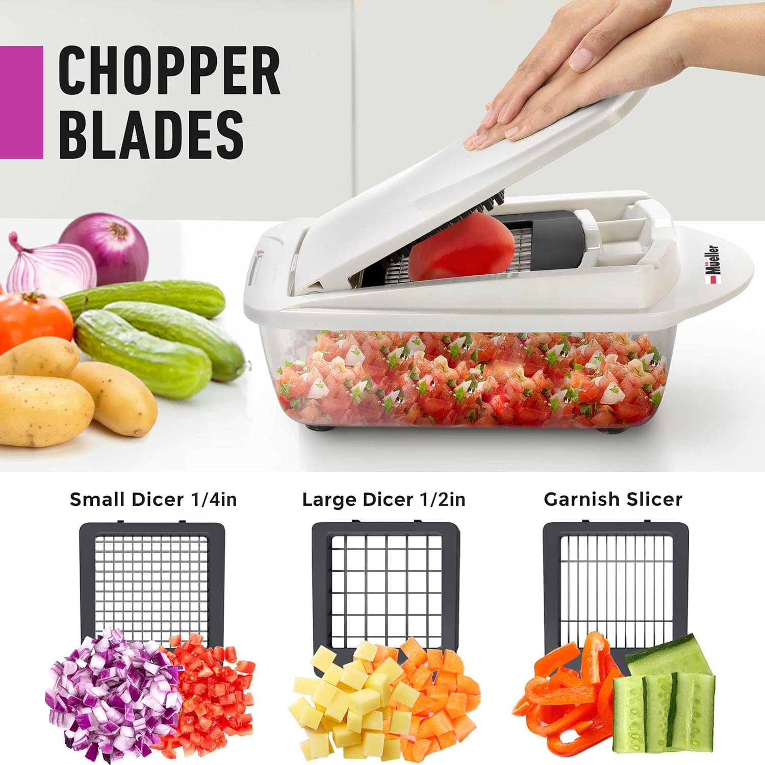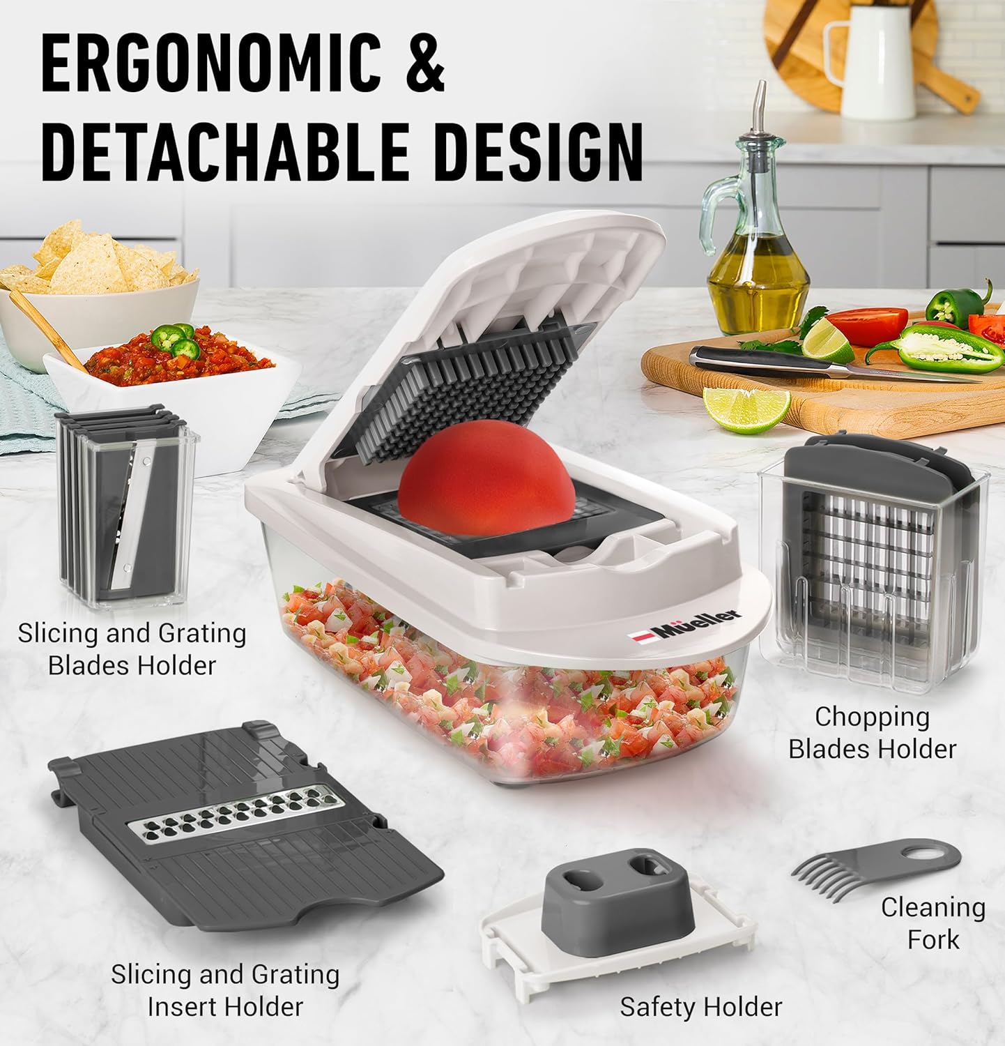 8 lames interchangeables trancher, couper en dés, hacher, râper et râper les légumes, les fruits, le fromage, les noix et plus encore.