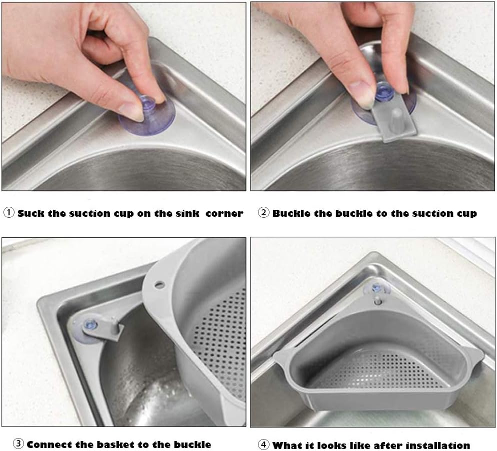 Onerbuy Panier d'évier triangulaire sans perçage avec ventouse, support de rangement pour cuisine, salle de bain, boîte à savon