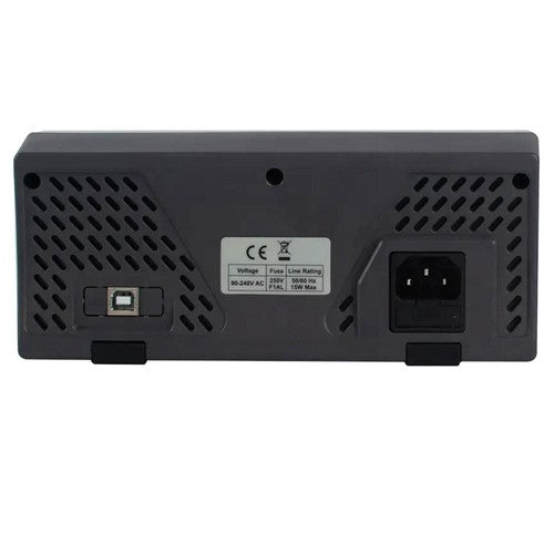 | Specification | Display: 3.5-inch TFT LCD (480*320 resolution) Max. Display: 55000 counts DC Voltage: 50mV - 1000V AC Voltage: 500mV - 750V DC Current: 500μA - 10A AC Current: 500μA - 10A Resistance: 500Ω - 50MΩ Frequency: 10Hz - 60MHz Capacitance: 50nF - 50mF Diode: 3V Continuity: 1000Ω Temperature: K type, PT100 (K-type temperature probe is NOT included.) Data Logging Duration: 15ms - 9999.999s Data Logging Length: 1000 points Warm-up Time: 30 minutes Programmer Language: Standard SCPI, compatible with commands of mainstream multimeters |