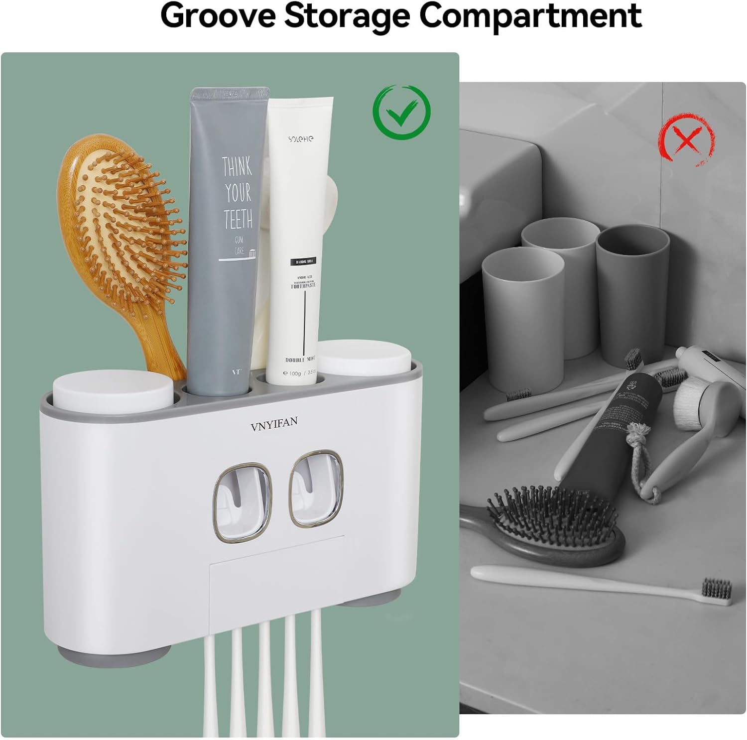 💁【Compartiment de rangement rainuré】Le support de dentifrice est conçu avec des rainures pour contenir de petits articles tels que des peignes. Rendez votre salle de bain plus rangée et belle.