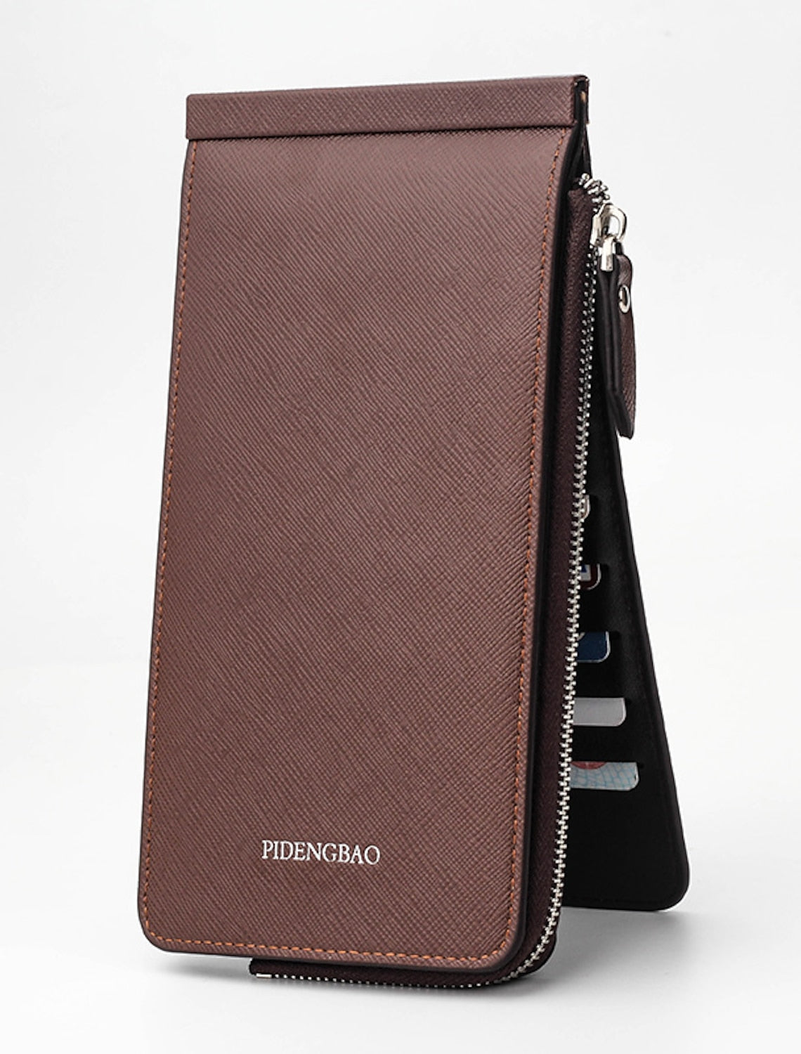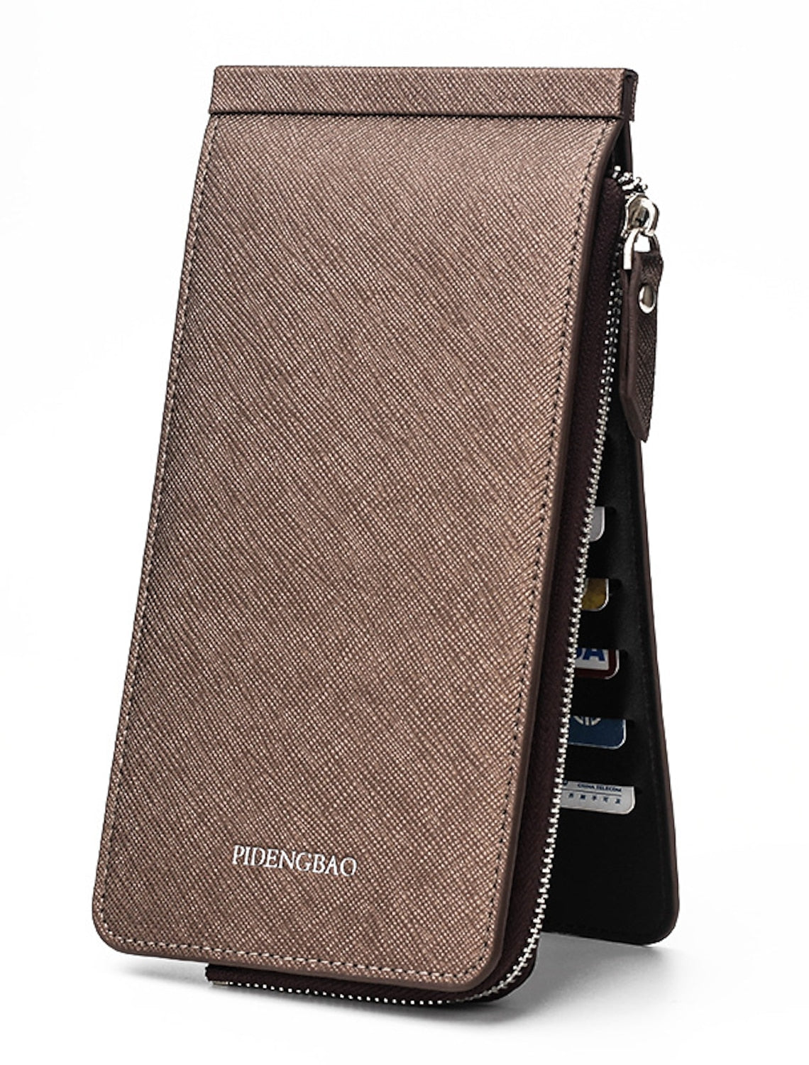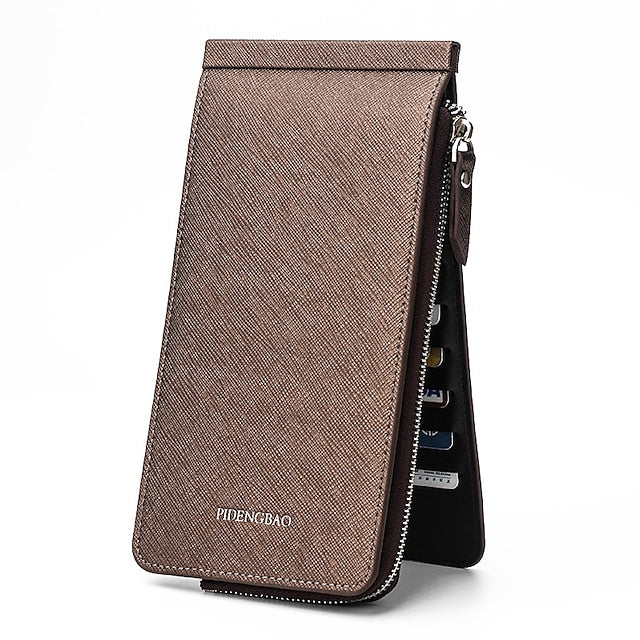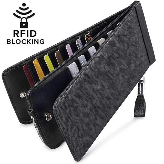 Portefeuille en cuir PU bloquant RFID pour hommes avec fermeture éclair support de carte de crédit multi-fente sac à main professionnel