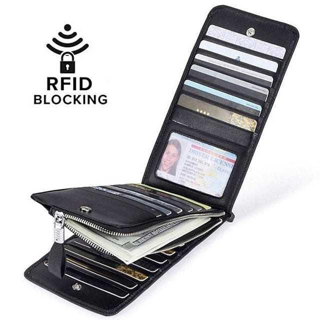 Portefeuille multifonction : Conçu pour répondre à divers besoins, ce portefeuille convient à de nombreuses occasions. Il dispose d'une poche extérieure pour les cartes ou reçus fréquemment utilisés, de 14 emplacements pour cartes internes et d'une fente pour les billets, offrant ainsi un grand espace de rangement.