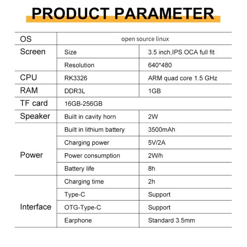 3.5-inch IPS screen with 640*480p resolution ensures a good visual experience.