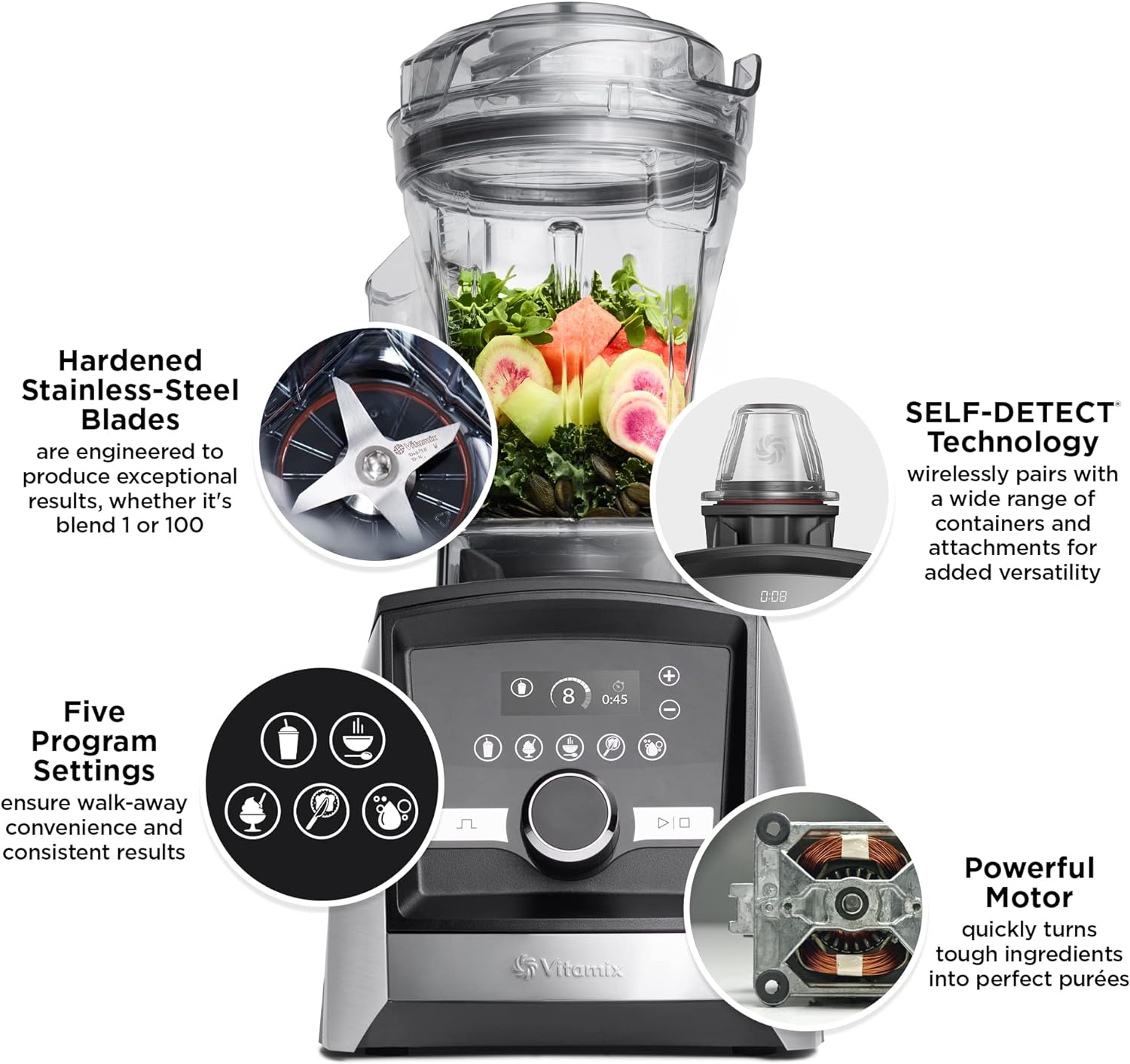 Paramètres du programme : cinq paramètres de programme (pour les smoothies, les soupes chaudes, les sauces et tartinades, les desserts glacés et l'auto-nettoyage) garantissent un confort optimal et des résultats constants.