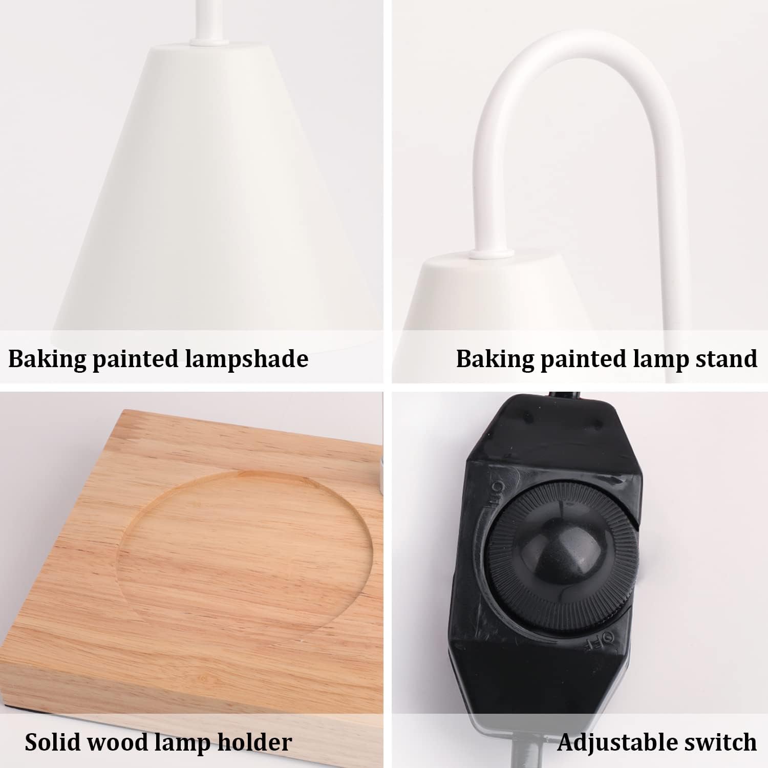 Haute qualité : le fond de la lampe chauffe-cire est fabriqué en bois massif de haute qualité, et la rainure centrale est conçue pour éviter que les bougies parfumées ne tombent. Le lampadaire et l'abat-jour sont fabriqués avec de la peinture de cuisson, ce qui est tendance et texturé.