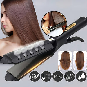 2-in-1 Professional Straightener & Steamer - 4 Adjustable Temperatures, Anti-Scald Safety, 4 Heat Settings, 4 Steam Modes, 4 Styling Brushes, 4 Styling Combs, 4 Styling Attachments, 4 Styling Tools, 4 Styling Options, Portable with US Plug for All Hair Ty