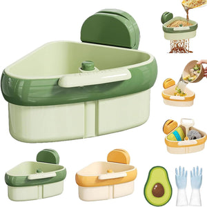 Curetoaway – Crépine d'angle à ventouse pour évier autonettoyante, filtre d'angle triangulaire automatique pour évier de cuisine, récupérateur de déchets alimentaires (vert)