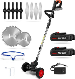 HUDAEN Cordless Grass Trimmer Weed Wacker, 3-in-1 String Trimmer Lawn Edger with 2x21V 2Ah Li-ion Battery for Garden and Yard with Wheel, Lightweight Adjustable Height Weed Eater Tool (Black)