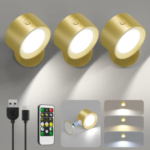 LED Wall Sconces 2 Pcs with Remote, Wall Mounted Lights Rechargeable Battery Operated, 3 Color Temperatures & Dimmable Wall Lamp Magnetic 360° Rotation Wireless Light