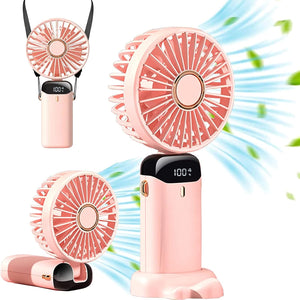 Portable Handheld Fan, Mini Desk Fan, Small Neck Fans 4000mAh, 90° Rotation, LCD Display, Ultra Quiet Battery Operated Personal Hand Held Fans USB Rechargeable for Indoor Outdoor