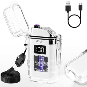 Bistfy Briquet Électrique, Briquet USB Rechargeable avec Affichage Numérique, Coupe-Vent Imperméable Double Arc Briquet Plasma, Briquet Stylépour Camping Randonnée Survie (Blanc)