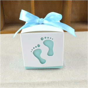 Gift Box 20pcs Baby Foot Candy Box Baby Shower Carriage Paper Sweet Bag Footprints Party Favor Boxes Baptism Container Gift Box (Color : Foot Light Blue, Gift Box Size : 20pcs)