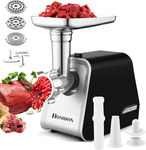 Hachoir à viande électrique, 2000 W, avec 3 broyeurs et tubes de remplissage de saucisses pour un usage domestique, machine à saucisses en acier inoxydable/noir