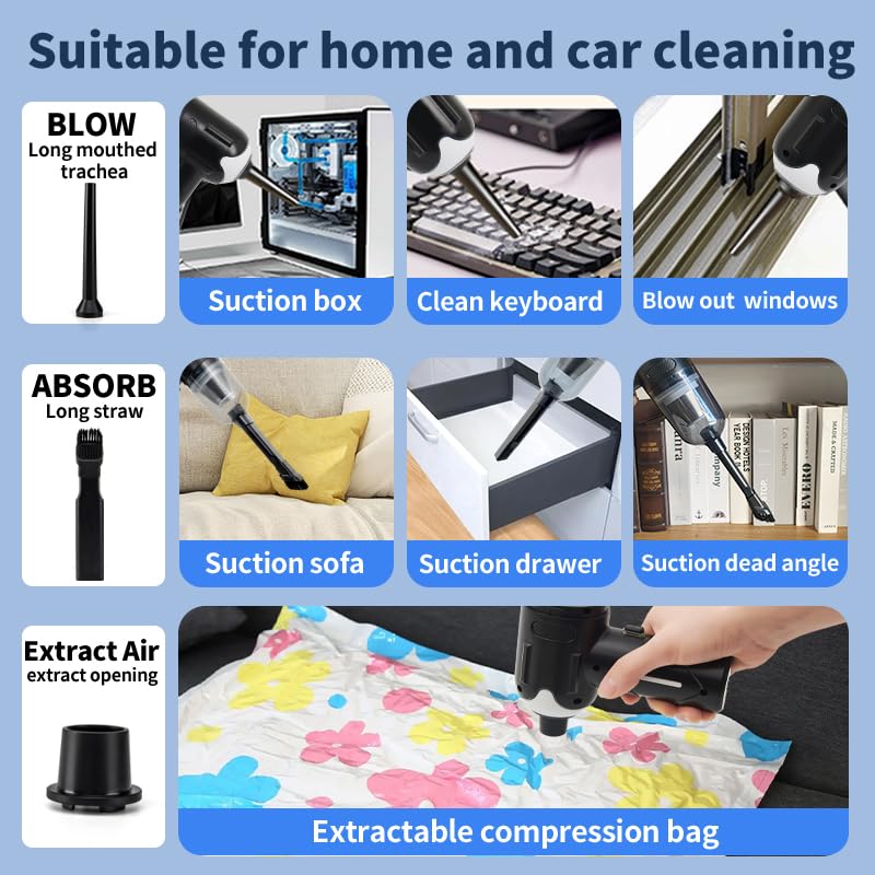 💎【Aspirateur et souffleur 2 en 1】 Ce n'est pas seulement un aspirateur ordinaire, c'est aussi un souffleur pratique. L'entonnoir inclus transforme l'aspirateur sans fil en un souffleur polyvalent, éliminant sans effort la poussière des claviers et gonflant même des ballons.